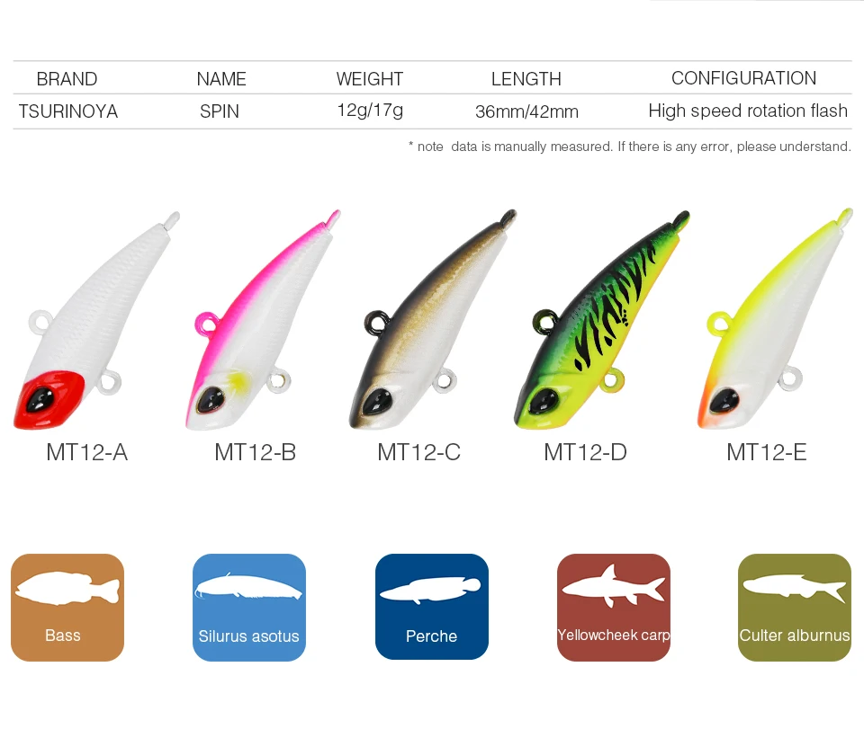 TSURINOYA señuelo de pesca lápiz hundido señuelo duro VIB Spinner cola Popper Wobbler señuelo de pesca duro MT12 12g 17g