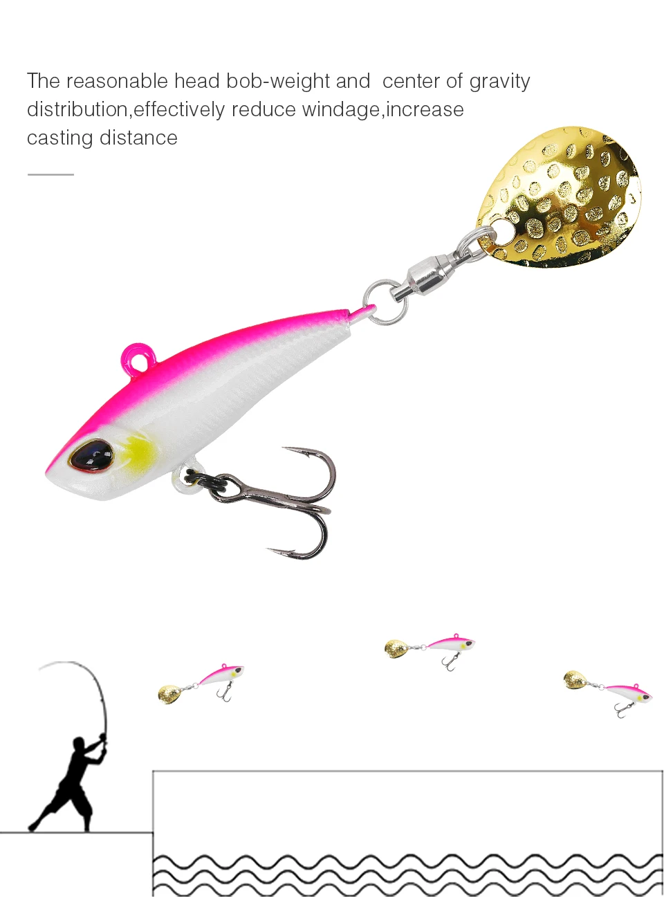 5. La cabeza del cebo es oblicua, agitará las salpicaduras y atraerá al pez objetivo.