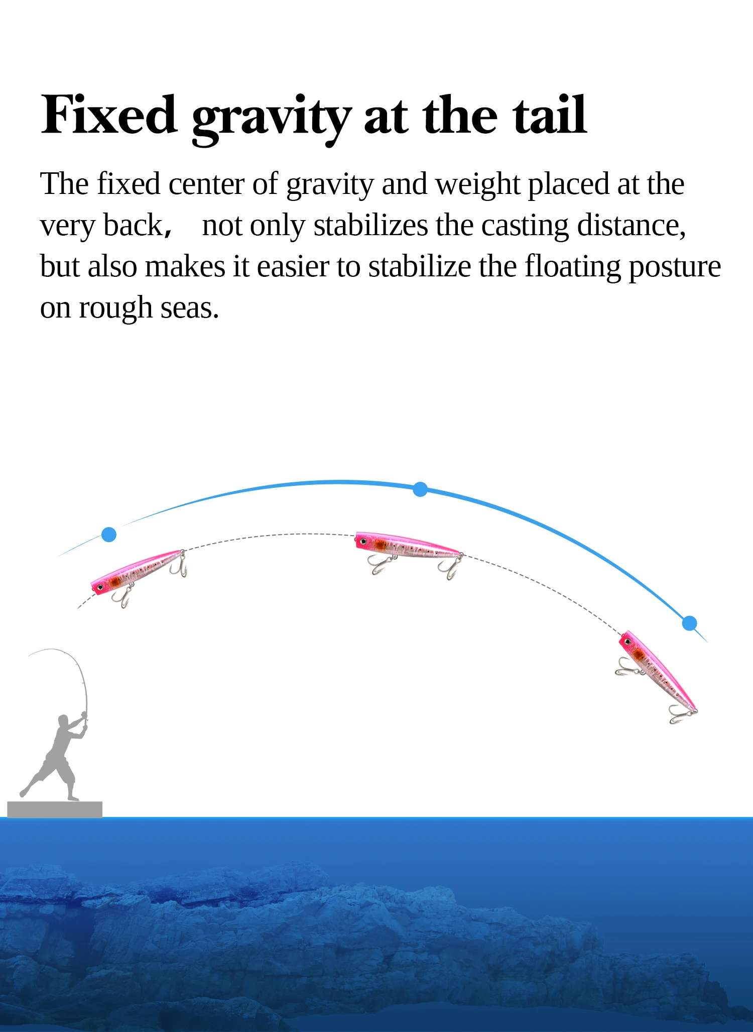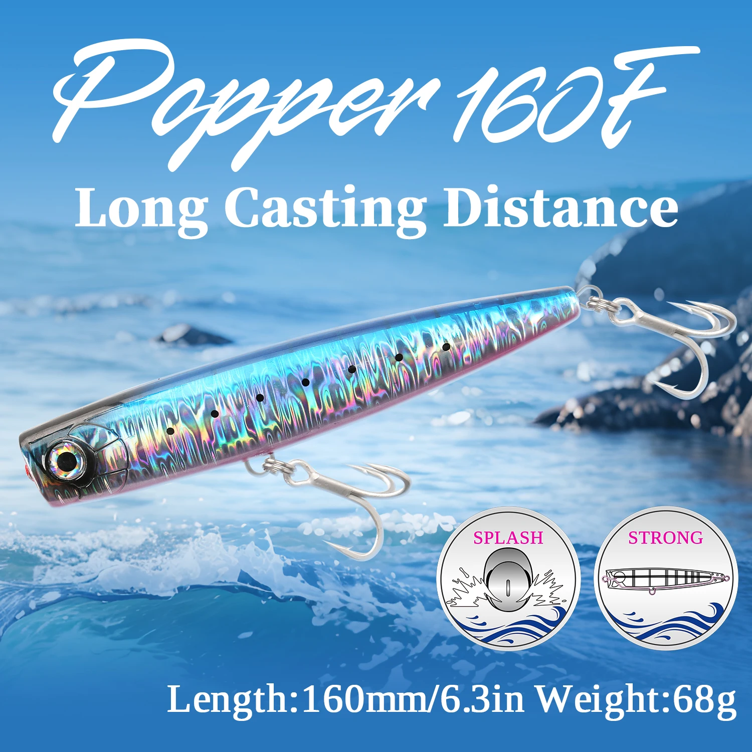 Señuelo de pesca TSURINOYA Topwater Popper, 160mm, 68g, anzuelos de agua de mar de fundición larga, cebo Artificial para atún, GT y pez de juego de agua salada