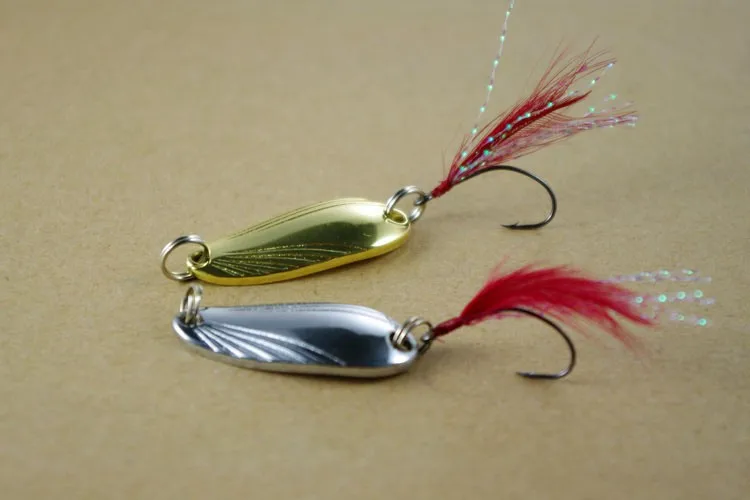 Pesca solo gancho cuchara señuelo pluma Spinner cebo 2 piezas lote venta Shell Jigbait señuelos