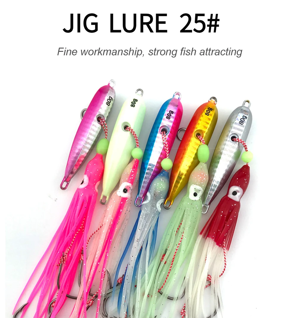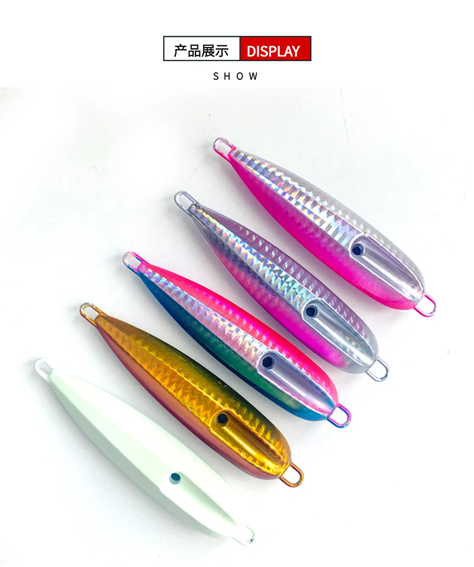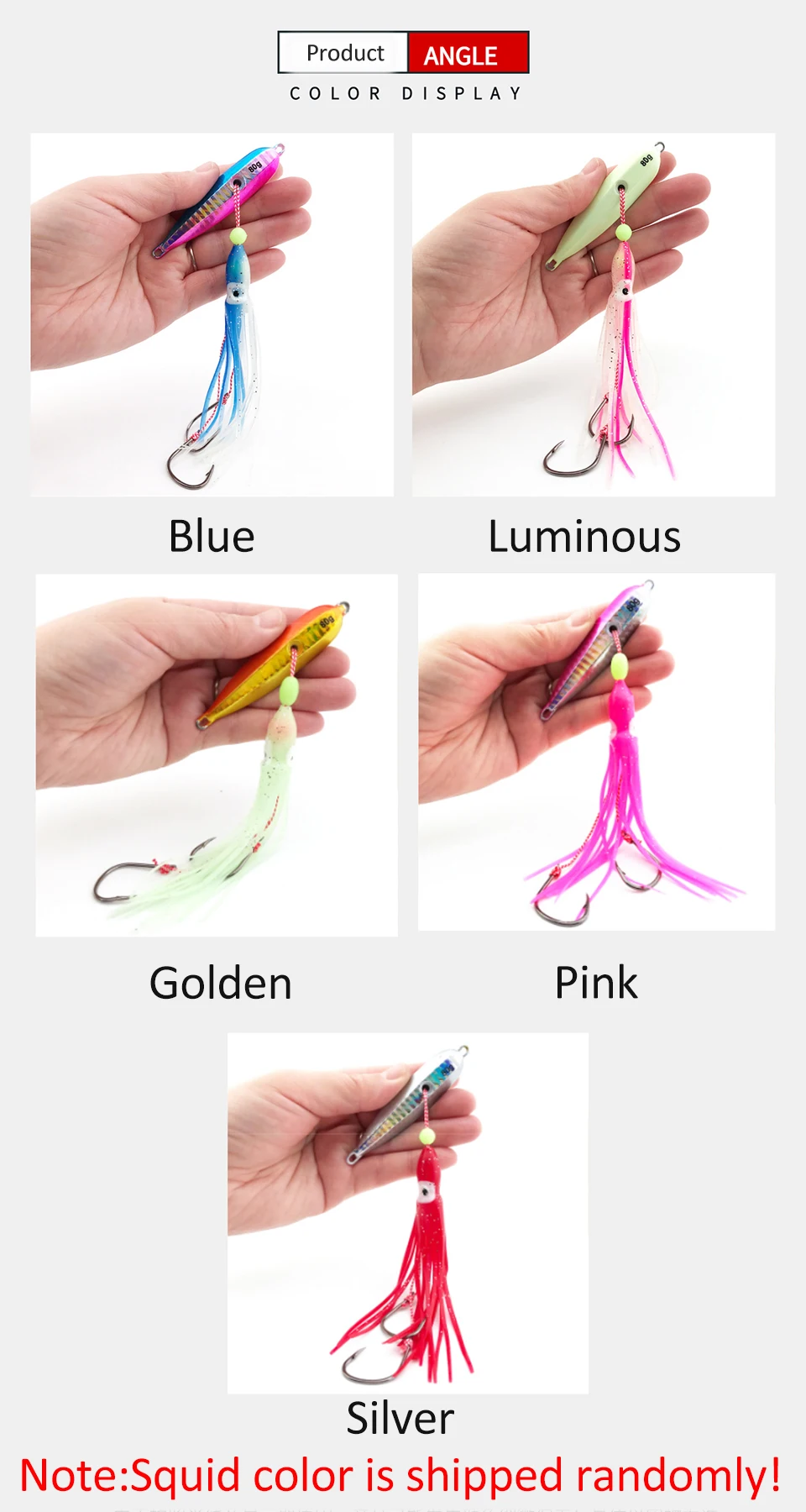 Señuelo de Pesca vertical, pesas de 40-200g, cabeza de Metal Isca, cebo luminoso Artificial, calamar, anzuelo BKK, Pesca de lubina, Pesca Mar