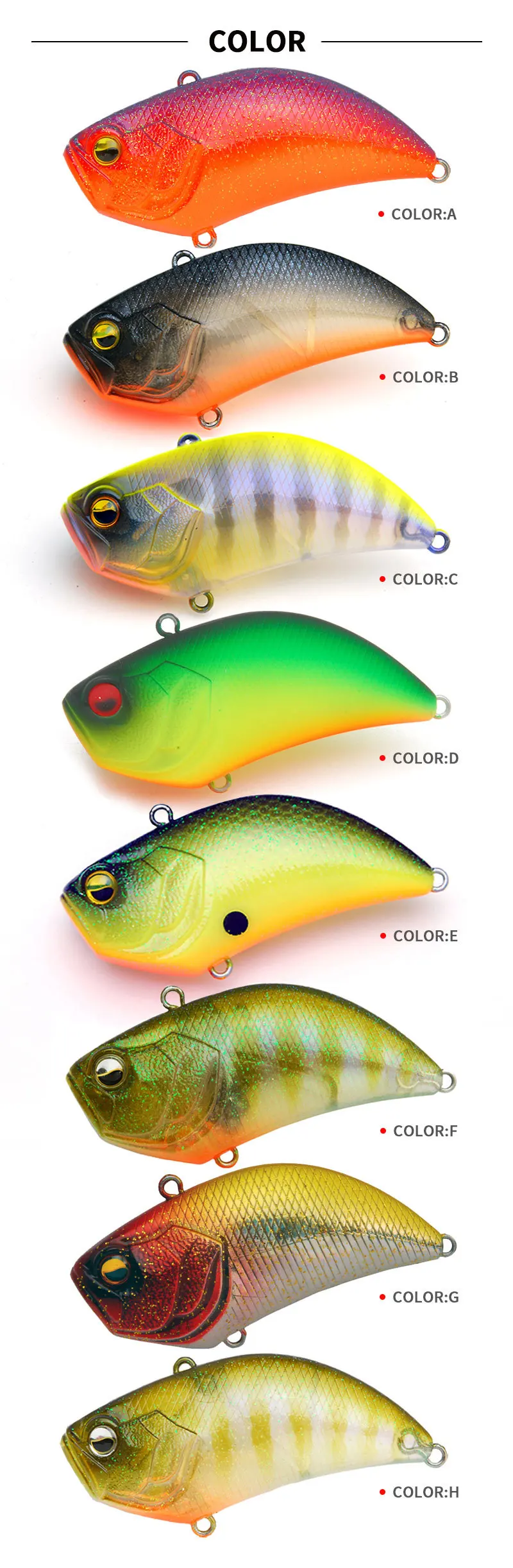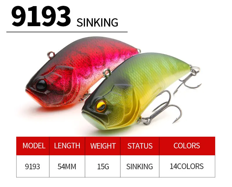 Señuelo de pesca VIB, 54mm, 15g, cebo Artificial oscilante que se hunde con anzuelo al revés para peces de agua dulce y salada