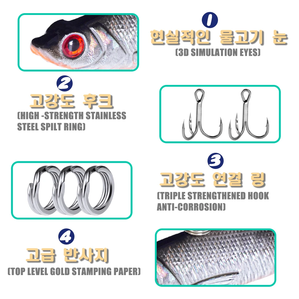 3. Los cebos tienen una pintura realista y ojos 3D vívidos, hacen que el cebo parezca un pez real nadando en el agua durante la pesca.