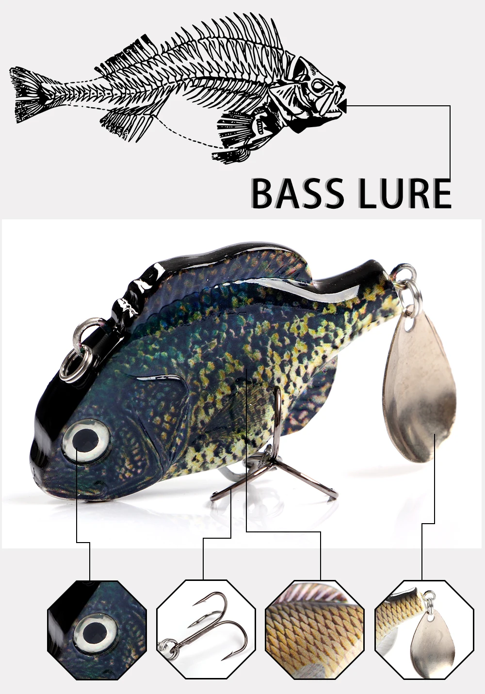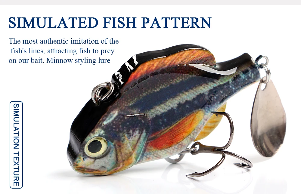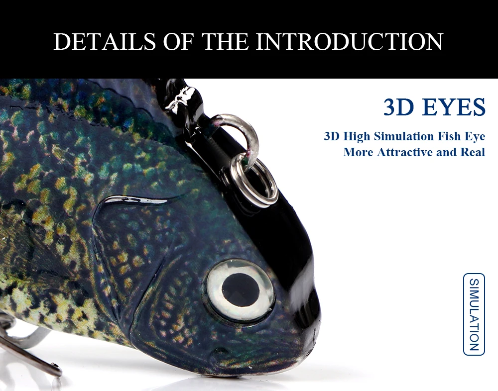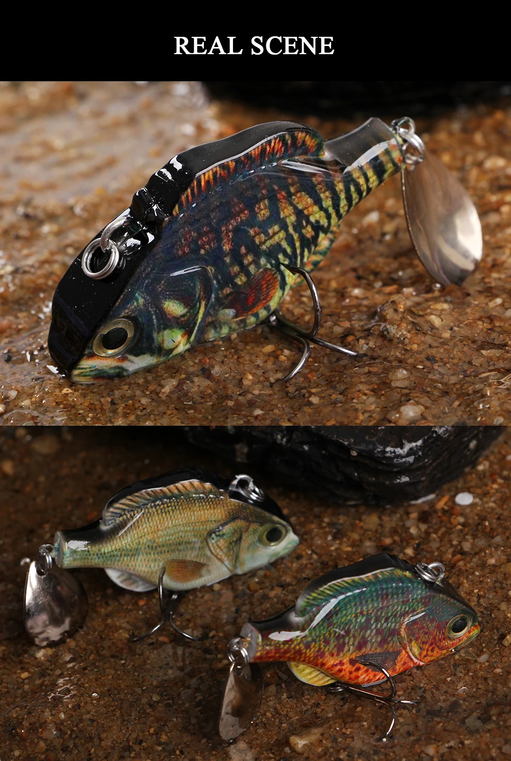 Señuelo de pesca VIB con cuchara de Metal, ojos 3D, vibración, cebo Artificial duro, Wobblers de lubina, 37g, 6,5 cm