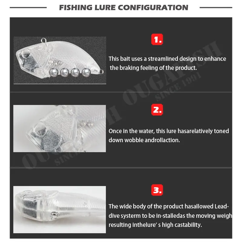 Señuelo De Pesca vibración hundimiento en blanco señuelos sin pintar 55mm 14g Wobblers distantes Leurre Isca Accesorios artificiales De Pesca carpa