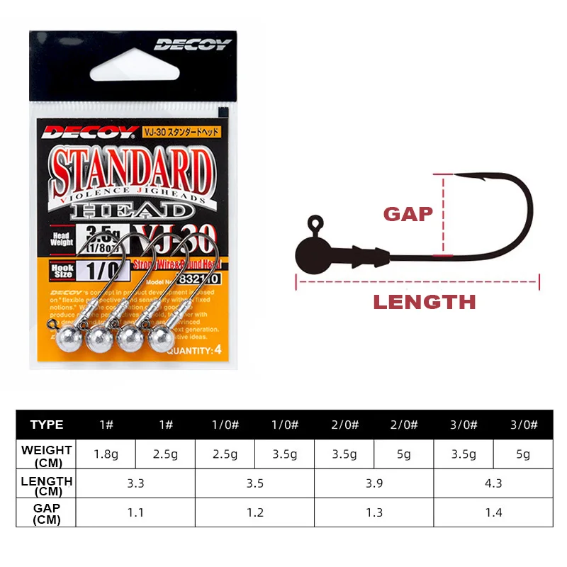 Señuelo de pesca VJ-30 Japón, 1,8-7g, 3/4/5 unids/lote por paquete, cabeza estándar, cabezas de plantilla, alambre fuerte y cabeza redonda