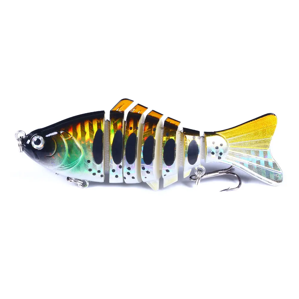 Especificaciones: Tipo: Articulación artificial Peso del señuelo: 15,6 g Longitud del señuelo: 100 mm Gancho:6# Gancho Ojos: ojos de pez 3D Peixe objetivo: chub pálido, lubina, picos, carpa de control amarillo, perca china, culter de boca superior Paquete: 1 * señuelo de pesca