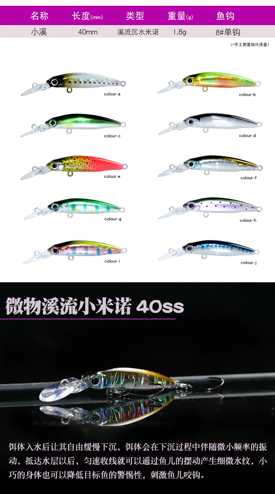 Señuelo de pesca wobbler de hundimiento lento, 1,8g, 40mm, con un solo gancho, cebo duro de fundición larga para Lucio, perca, Chub Jerkbait, 1 ud.