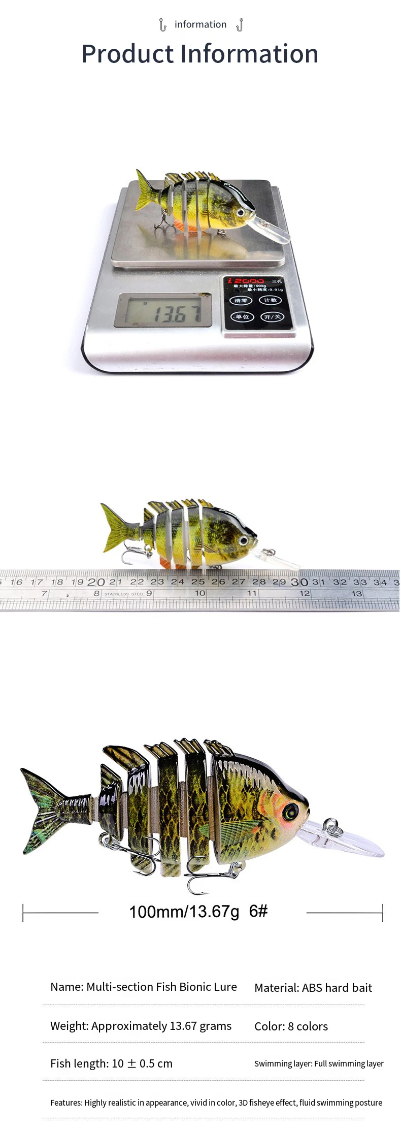 Señuelo de pesca Wobbler multiarticulado, 10cm, 14g, cebo de pesca duro Artificial, 6 segmentos, lengua larga biónica, Tilapia Swimbait para lubina