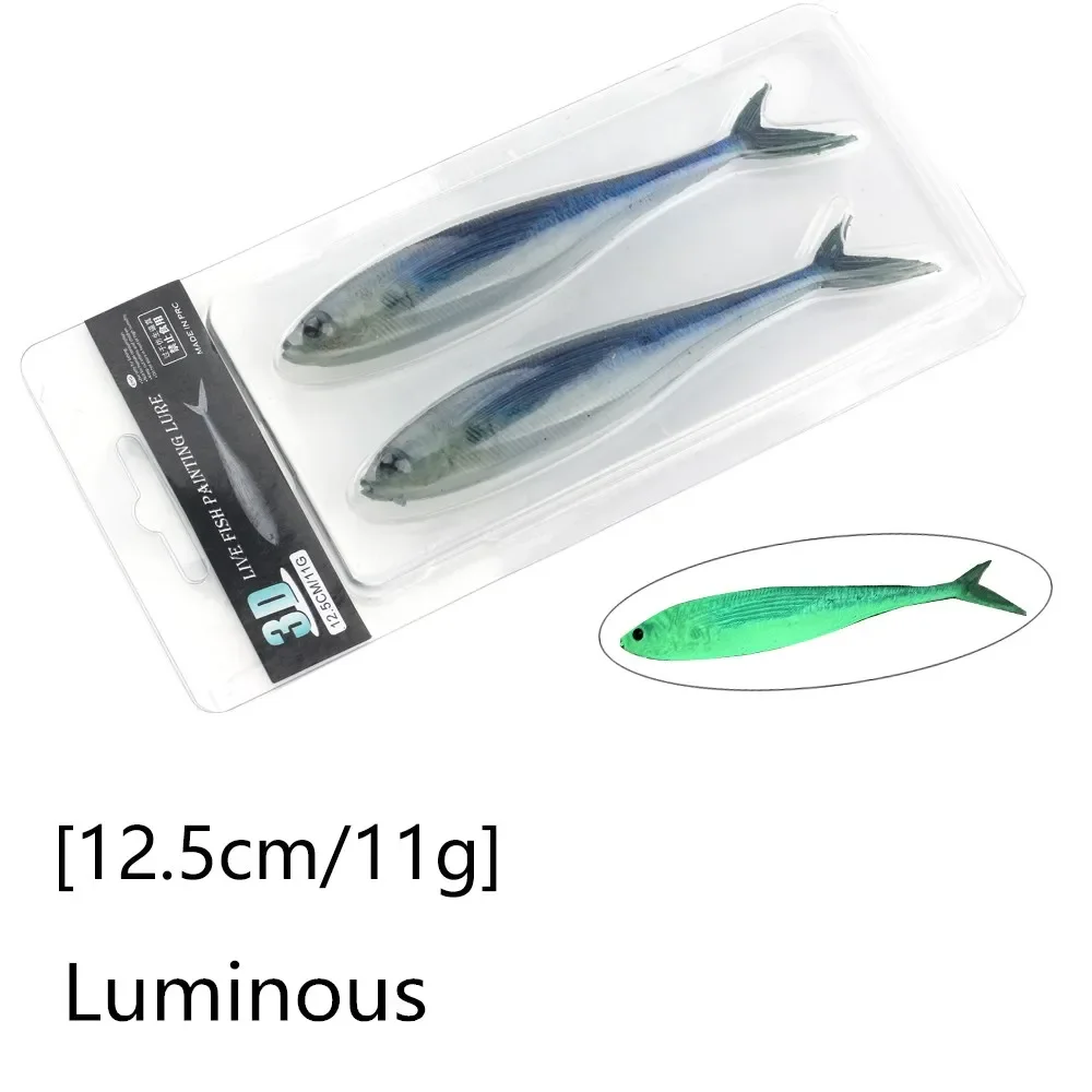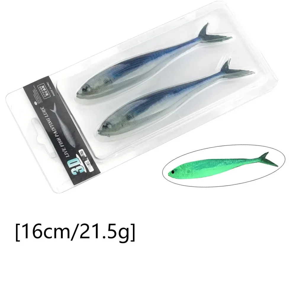 Señuelo de pintura de peces vivos 3D, 12,5 CM, 16CM, 19CM, Señuelos de pesca luminosos, cebo de pesca suave, tijera, cola de pez para atún y lubina