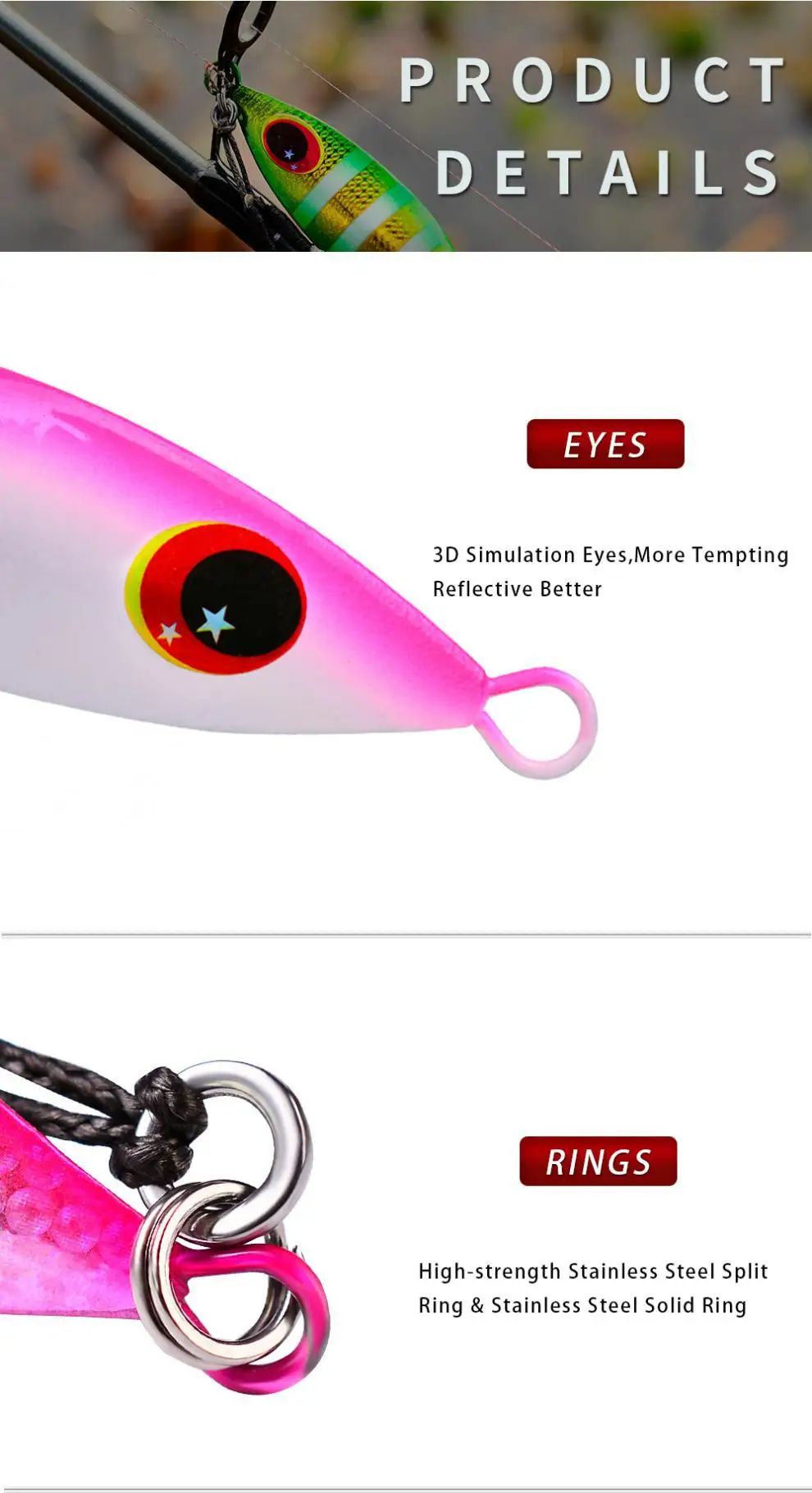 El contorno cónico, el alto reflejo y el cuerpo del cebo de mano de obra fina, incluso en condiciones de poca luz y de noche y de aguas profundas, también pueden atraer fuertemente a los peces.