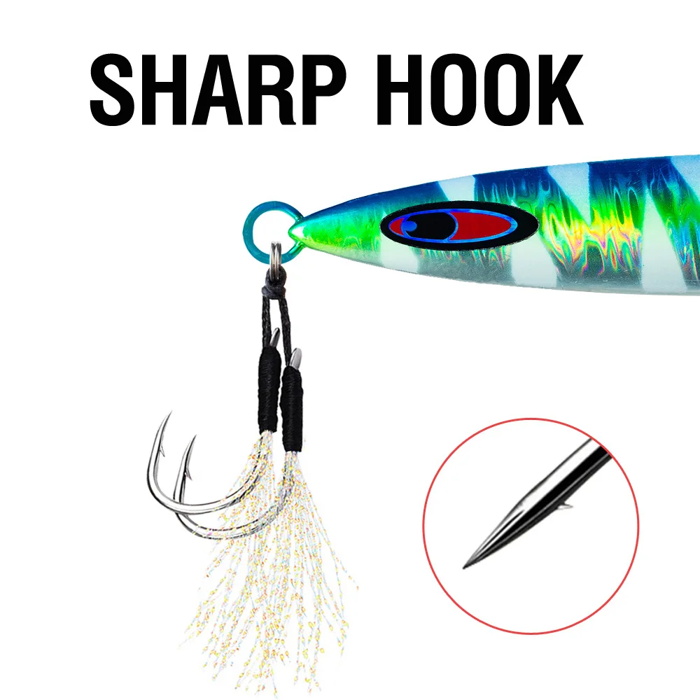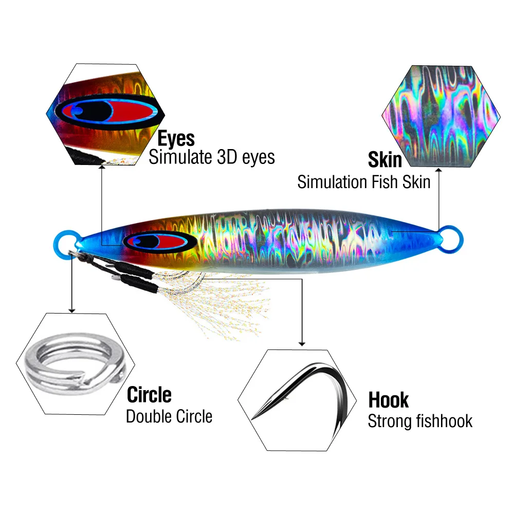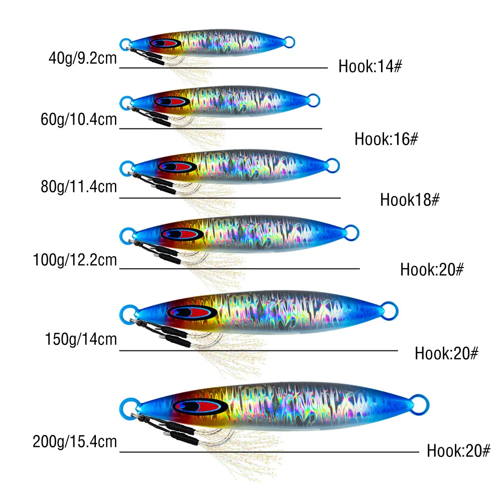 Señuelo de plantilla luminoso de hundimiento rápido, señuelo de fundición larga, 40G-200G, cebo duro de Metal con anzuelos afilados para pesca de lubina, 1 Uds.