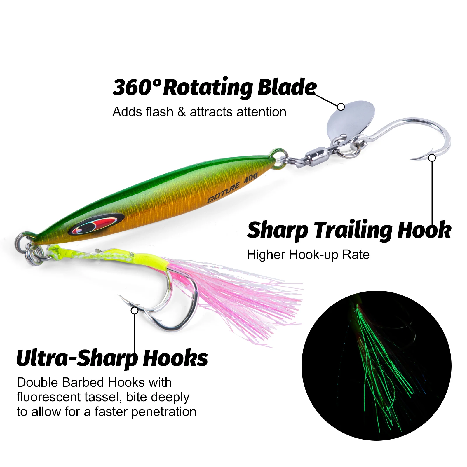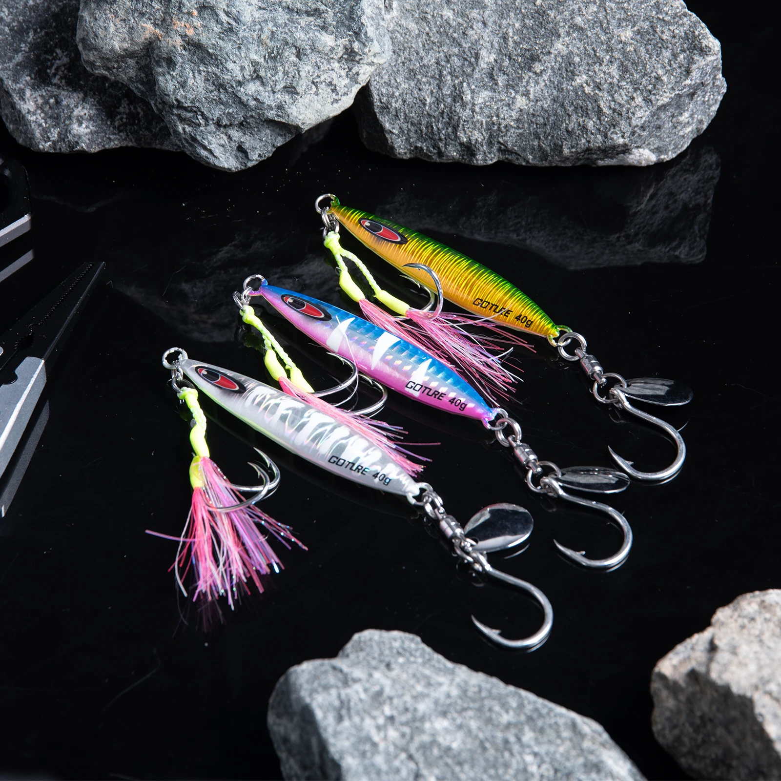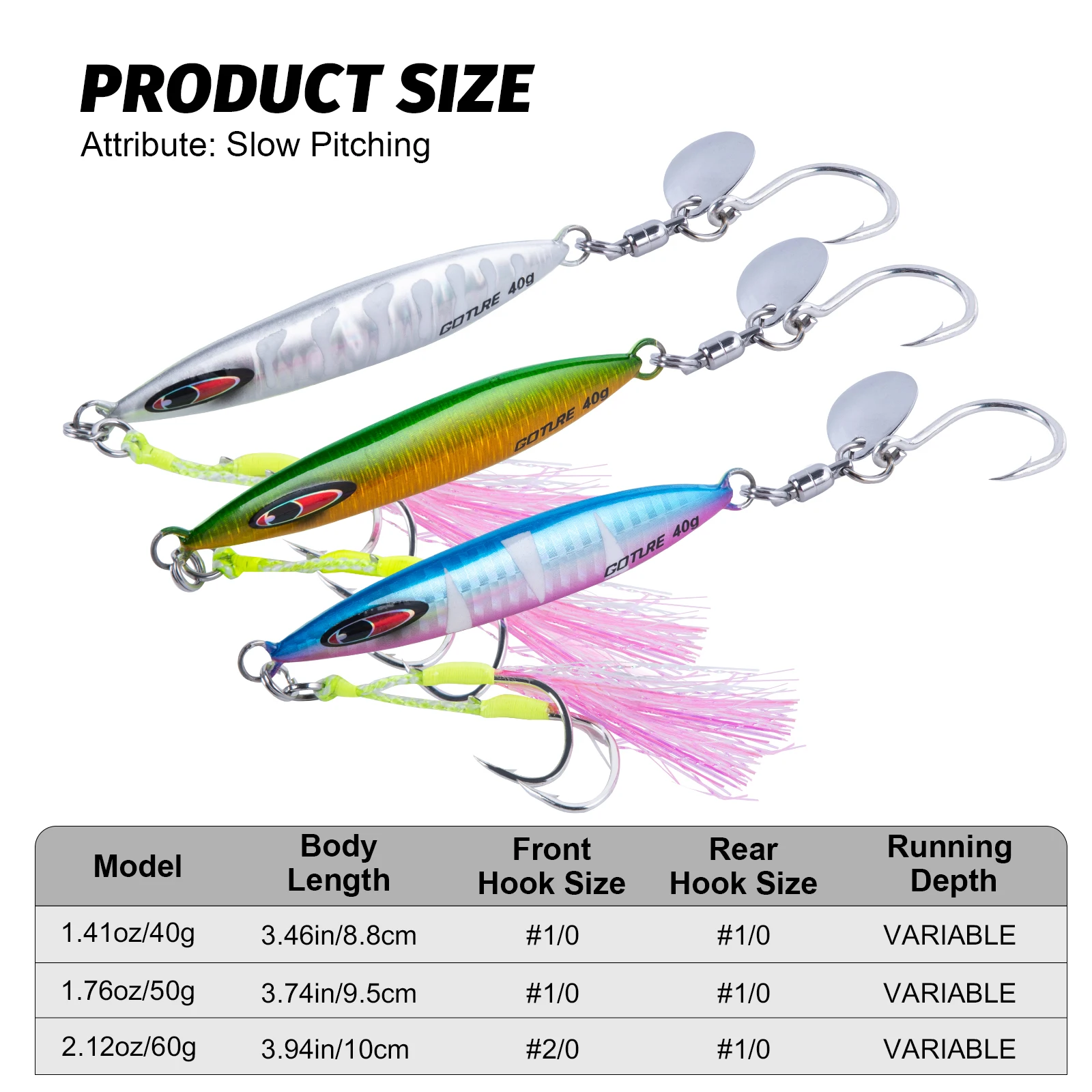 Goture-señuelo de plantilla de Metal, 3 uds., 40g, 50g, 60g, diseño luminoso, hoja giratoria, gancho afilado, señuelo de lubina marina, cebo Artificial Spinnerbait