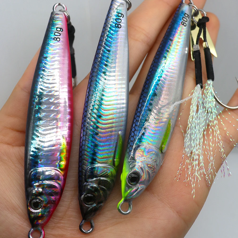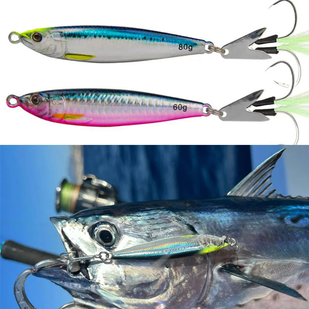 Señuelo de plantilla de Metal de hundimiento rápido impreso en 3D, 60g, 80g, atún, Wahoo Mahi, broche de agua salada, señuelo de pesca de fundición, plantilla de Metal Vertical