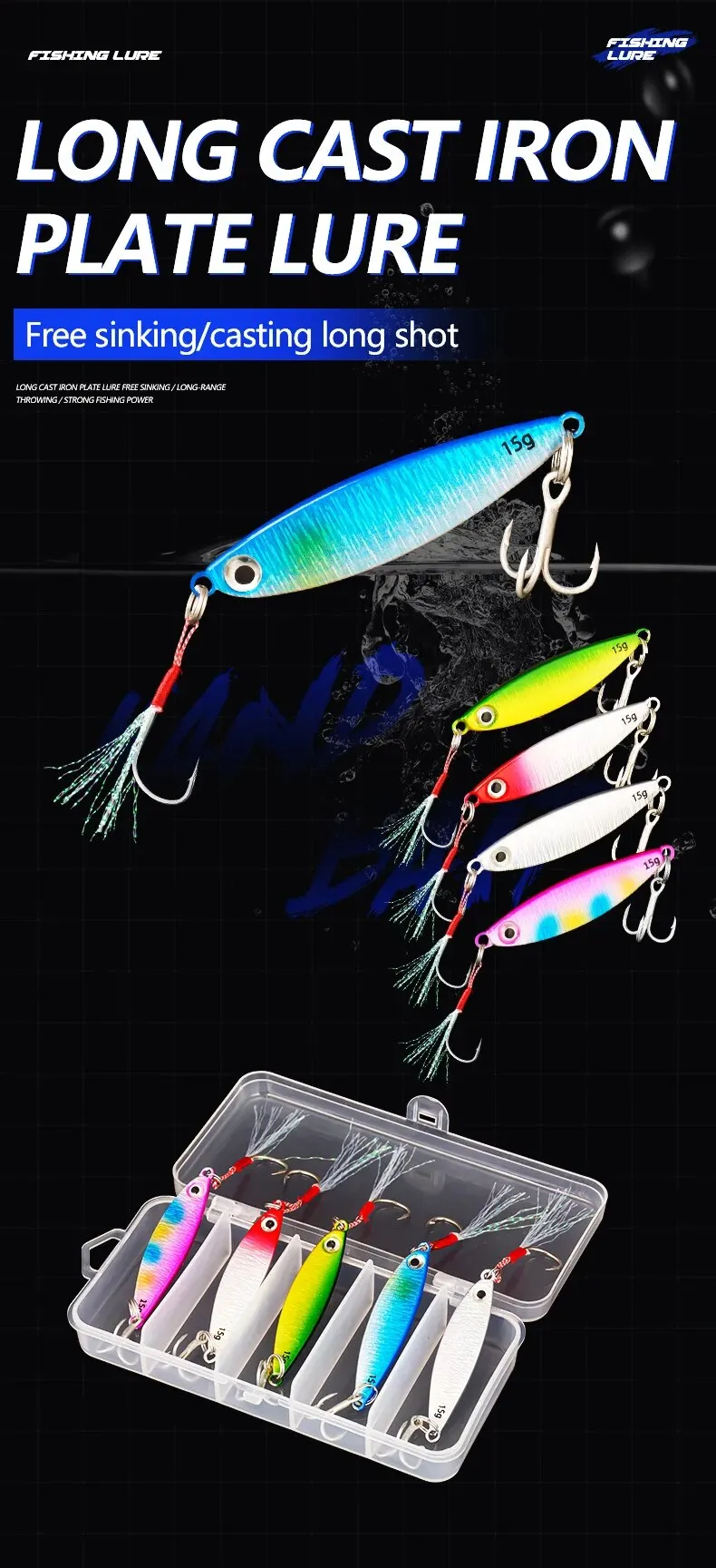 Características: Juego de señuelos de pesca de 7g, 10g, 15g, 25g, 5 uds., caja de señuelo, Crankbaits wobbler, cebo Artificial, señuelo de plantilla de metal para pescar