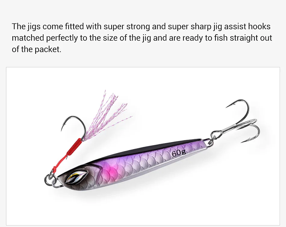 Las plantillas vienen equipadas con anzuelos de asistencia de plantilla súper fuertes y súper afilados que combinan perfectamente con el tamaño de la plantilla y están listas para pescar directamente fuera del paquete.