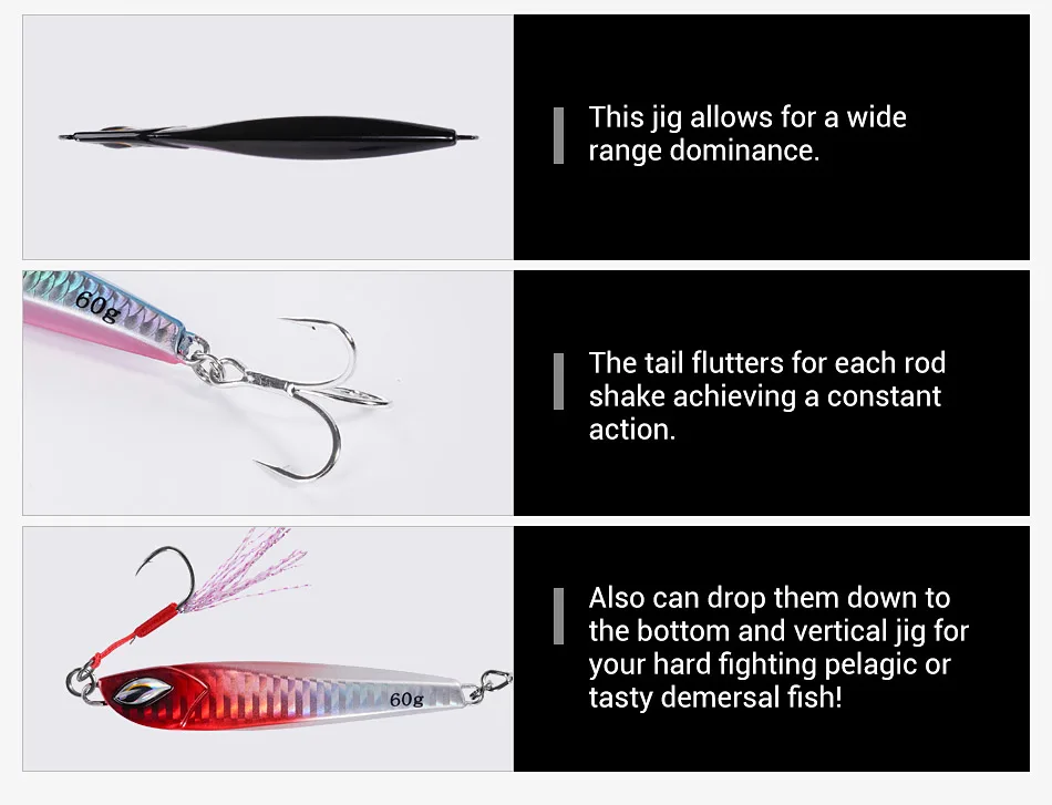 ¡También puede dejarlos caer hasta el fondo y la plantilla vertical para sus peces demersales pelágicos o pelágicos de lucha dura!