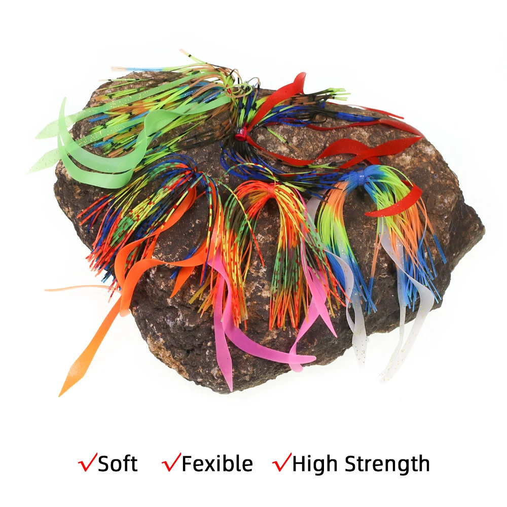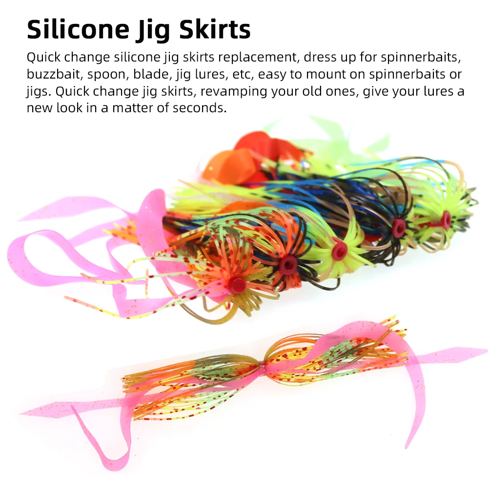 Reemplazo de faldas de plantilla de silicona de cambio rápido, vestido para spinnerbaits, buzzbait, cuchara, cuchilla, señuelos de plantilla, etc., fácil de montar en spinnerbaits o jigs. Las faldas de plantilla de cambio rápido, renovando sus antiguas, le dan a sus señuelos un nuevo aspecto en cuestión de segundos.
