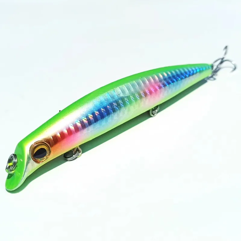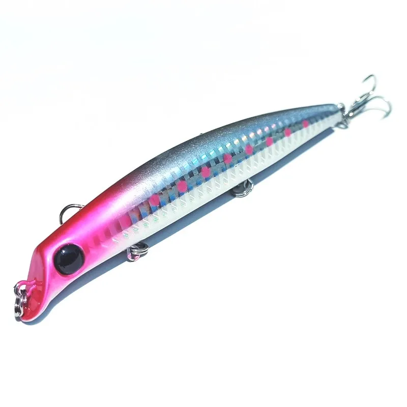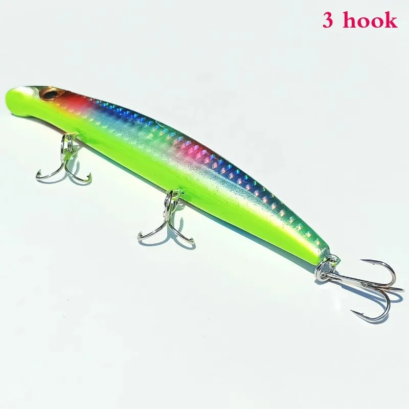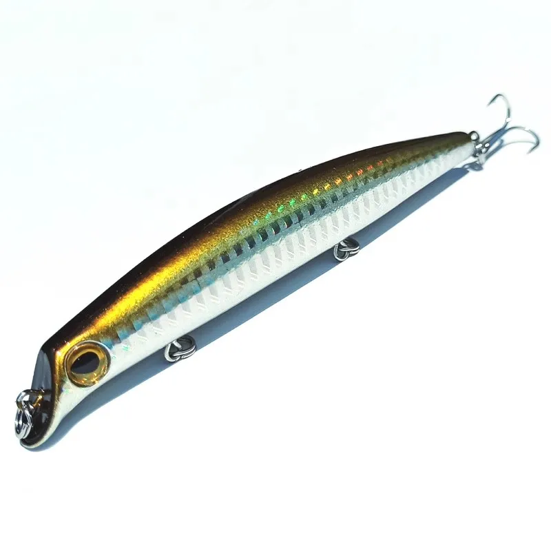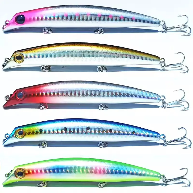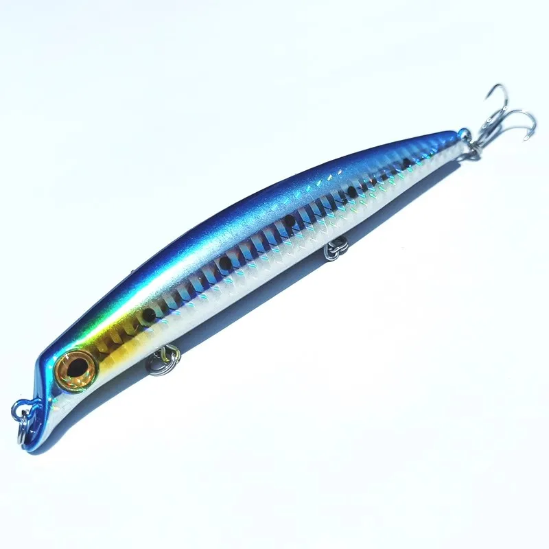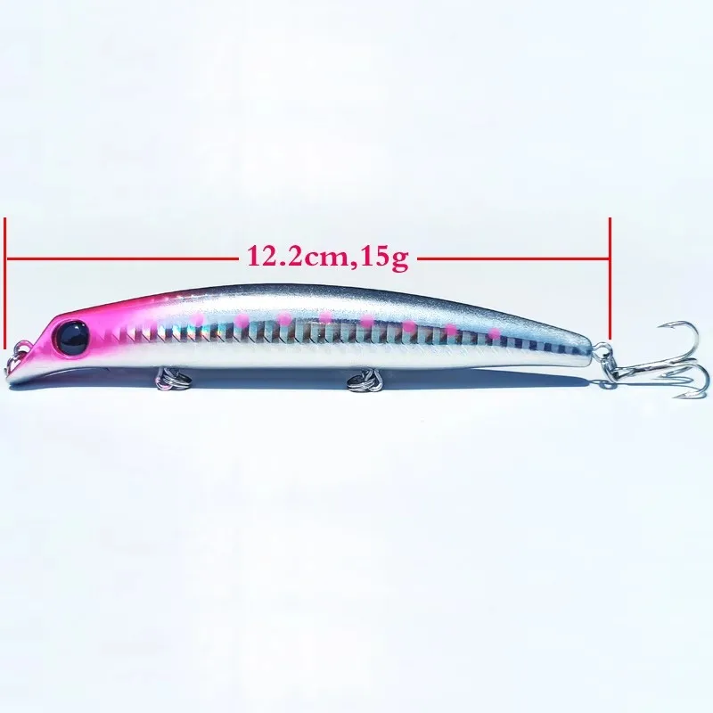 Señuelo de plástico duro Minnow, anzuelo de pesca afilado, lubina, caballa, pargo, croaker amarillo, 12cm, 15g, plantilla de pesca de mar