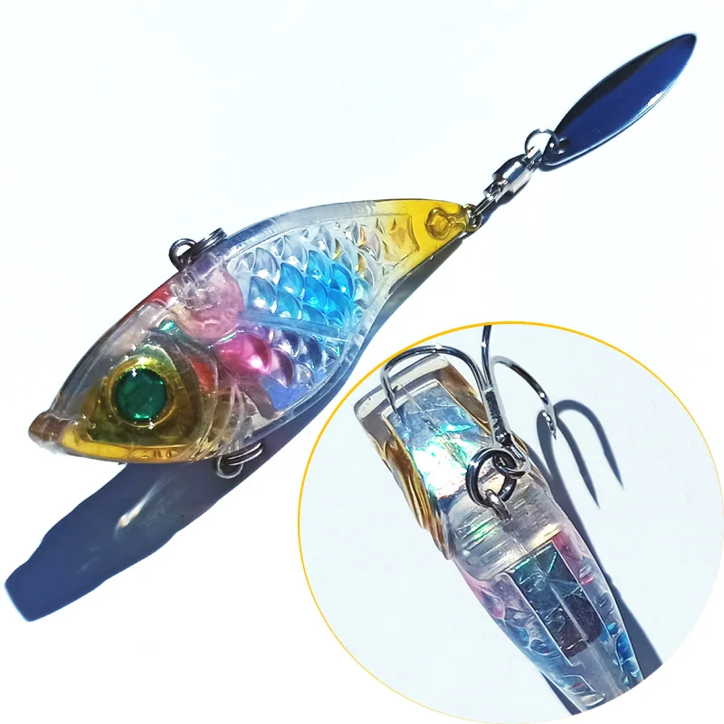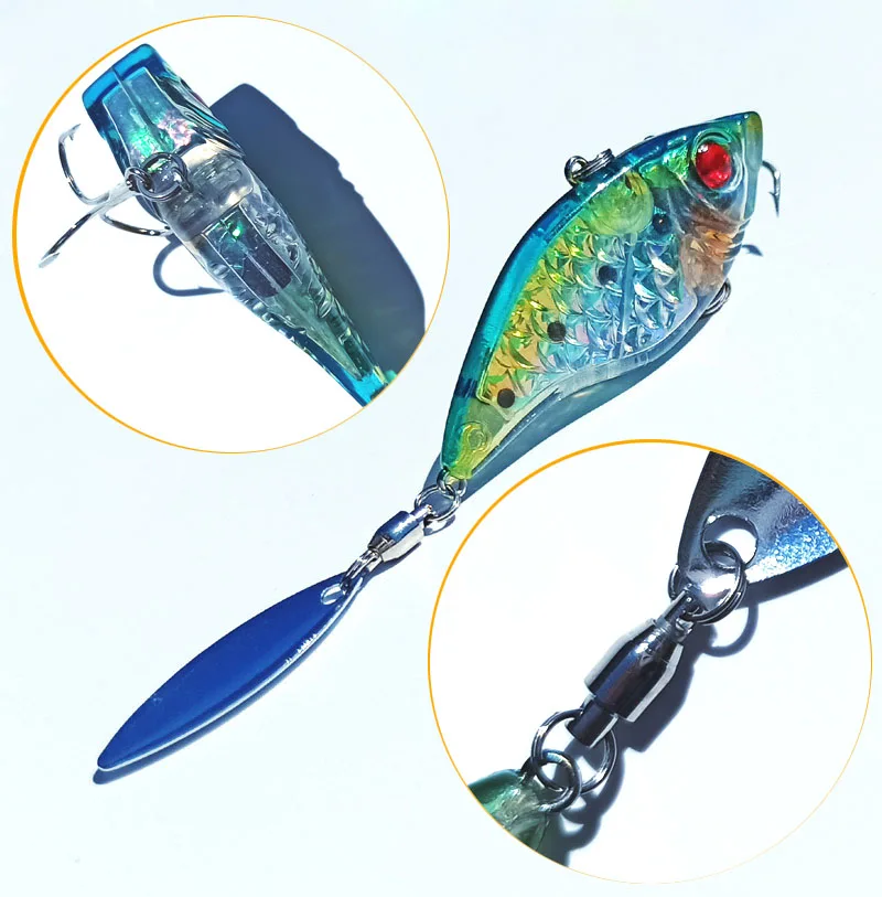 Señuelo de pesca con cuchara giratoria de Metal, cebos duros con lentejuelas, ruido, Paillette, cebo Artificial con anzuelo triple, 6cm, 10g