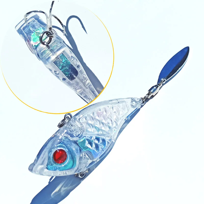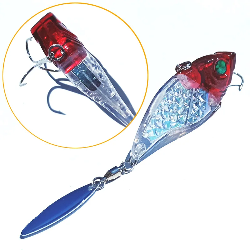 9g con 8 # Señuelo de triple gancho de níquel negro Shuang Ye, superficie de hélice, tractor, lápiz flotante, cebo de ruido biónico.