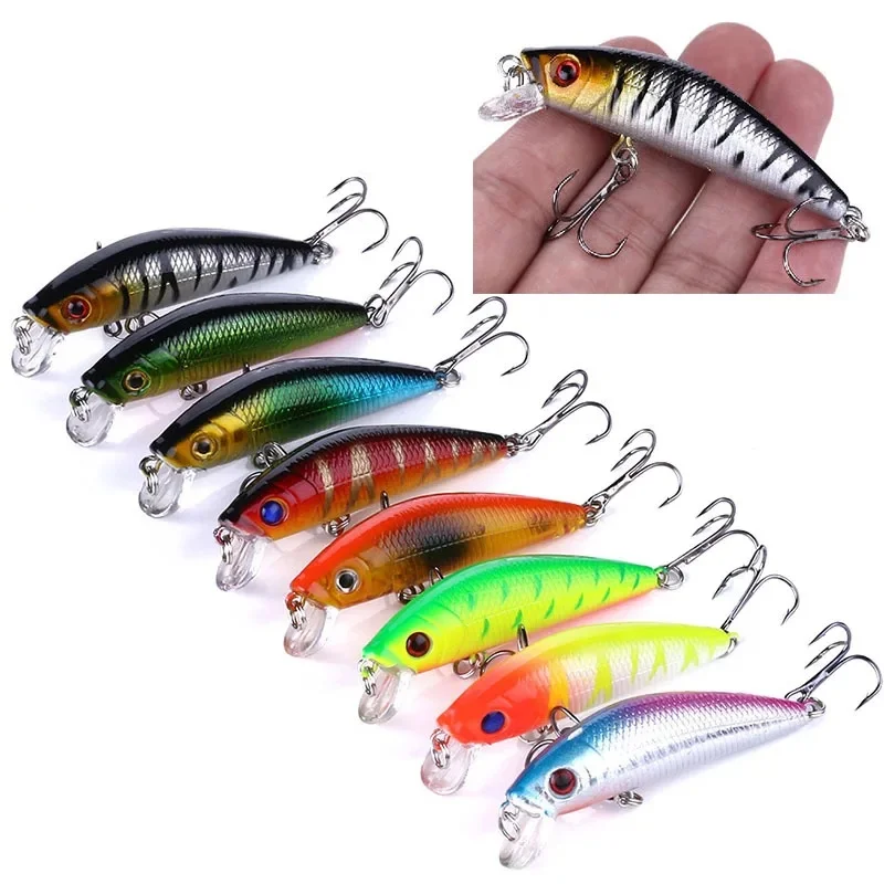 Señuelo de plástico flotante Minnow, 7CM-8,1G, cebo de pesca biónico, juego de cebo falso de agua dulce de largo alcance, equipo de pesca de peces depredatorios
