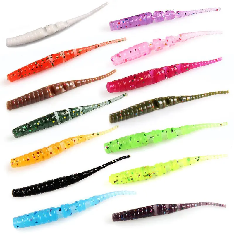 Señuelo de plástico suave para pesca, cebo de silicona, cabeza de gusano, perca, Lucio, trucha, agua dulce, 50 piezas