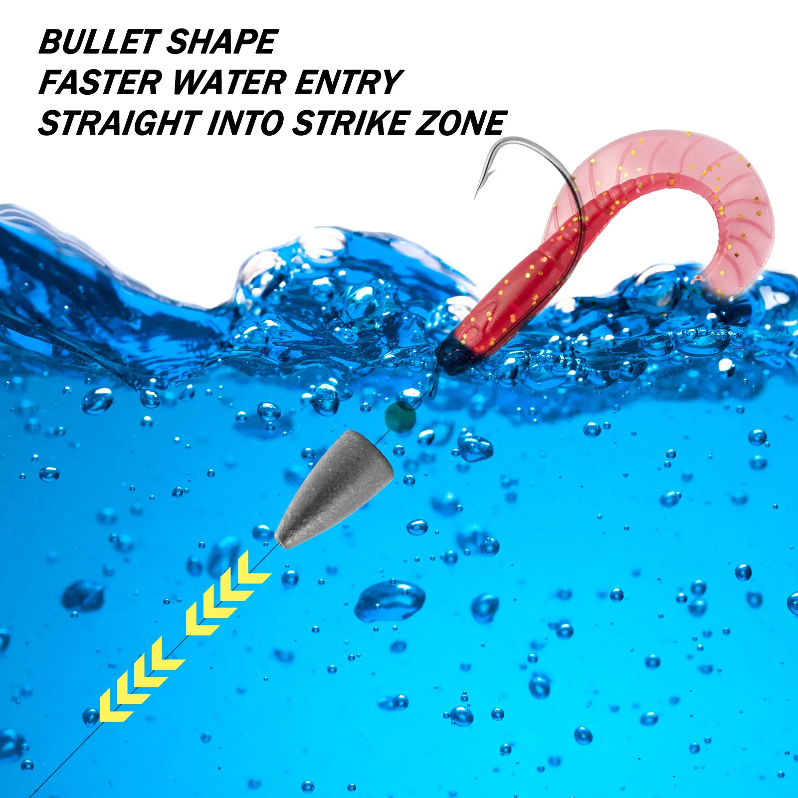 3. El diseño en forma de bala ayuda a que sus señuelos se hundan más rápido en su columna de agua favorita