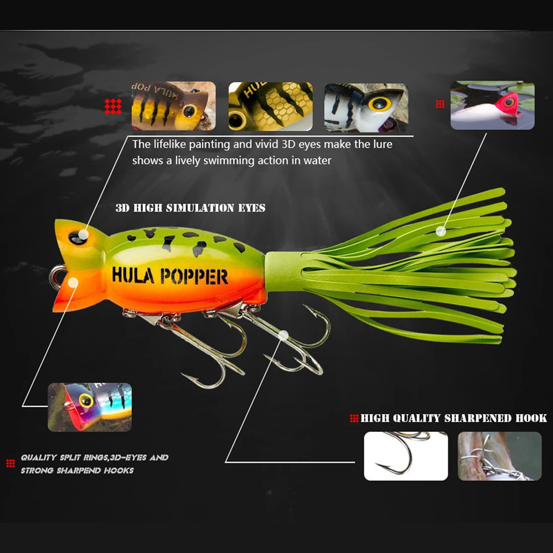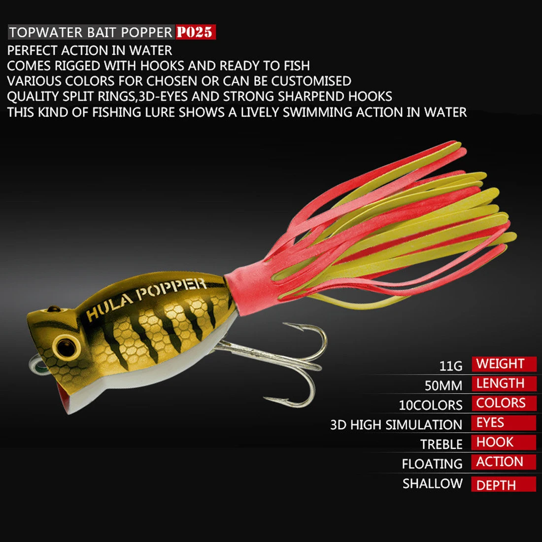 Nuestro señuelo de pesca (Crank Popper Minnow VIB) está meticulosamente elaborado para simular el movimiento natural de natación de los peces.Su movimiento realista crea un objetivo atractivo que atrae a los depredadores a morder.