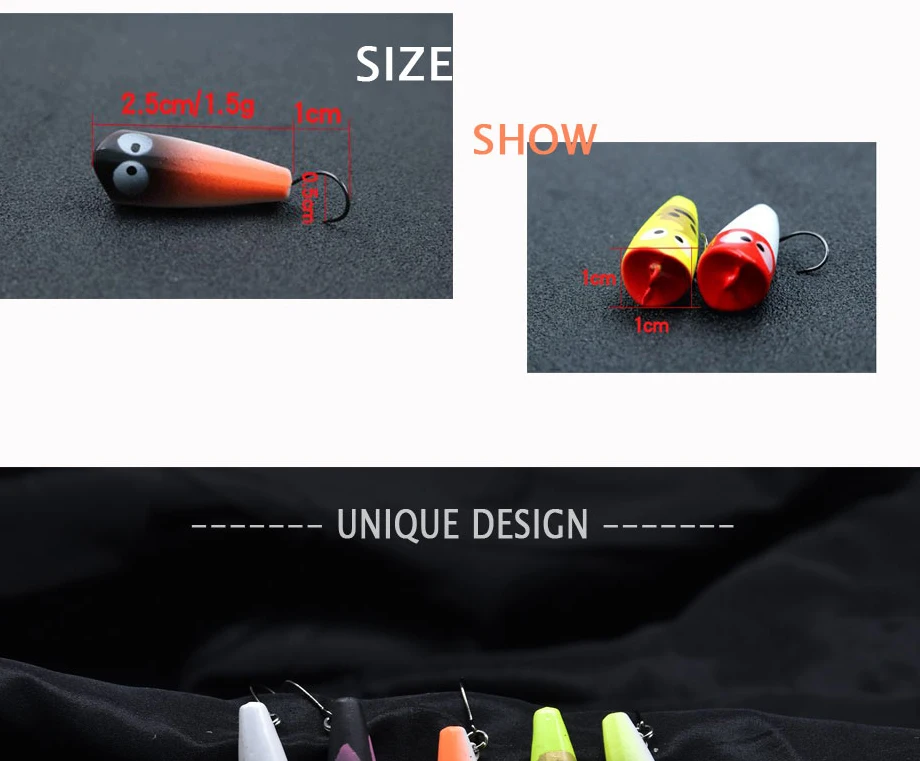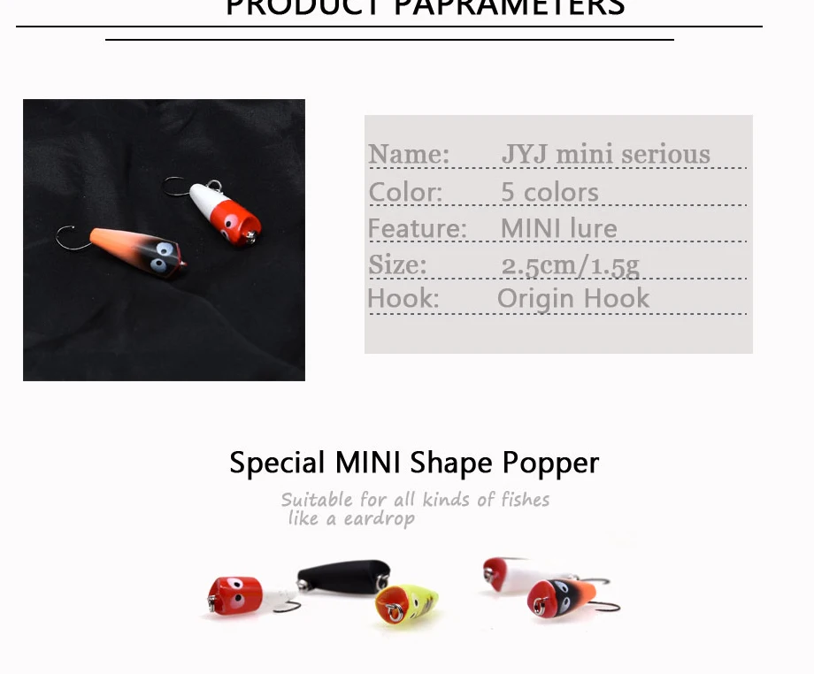 Señuelo de Popper flotante, 1 unidad, tipo súper completo, 2,7 cm, 1,5g, barato, anzuelos de manivela, mini señuelo de pesca popper