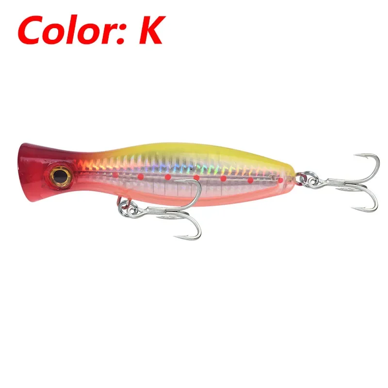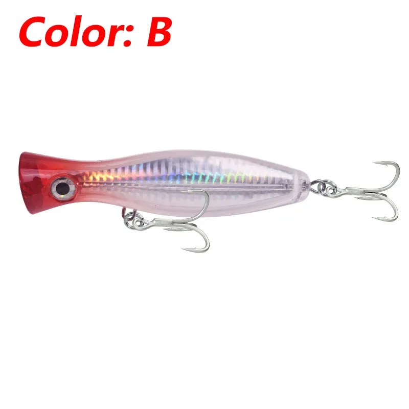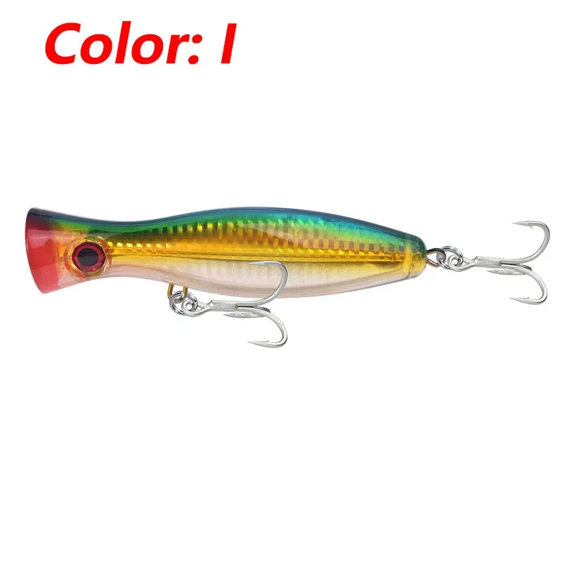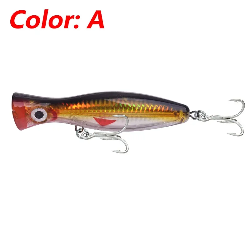 1 Uds. Señuelo Popper grande para pesca en el mar en agua superior, 12cm, 42g, Wobblers de pesca con curricán, aparejos de cebo Artificial de plástico láser, lubina y atún, Lucio