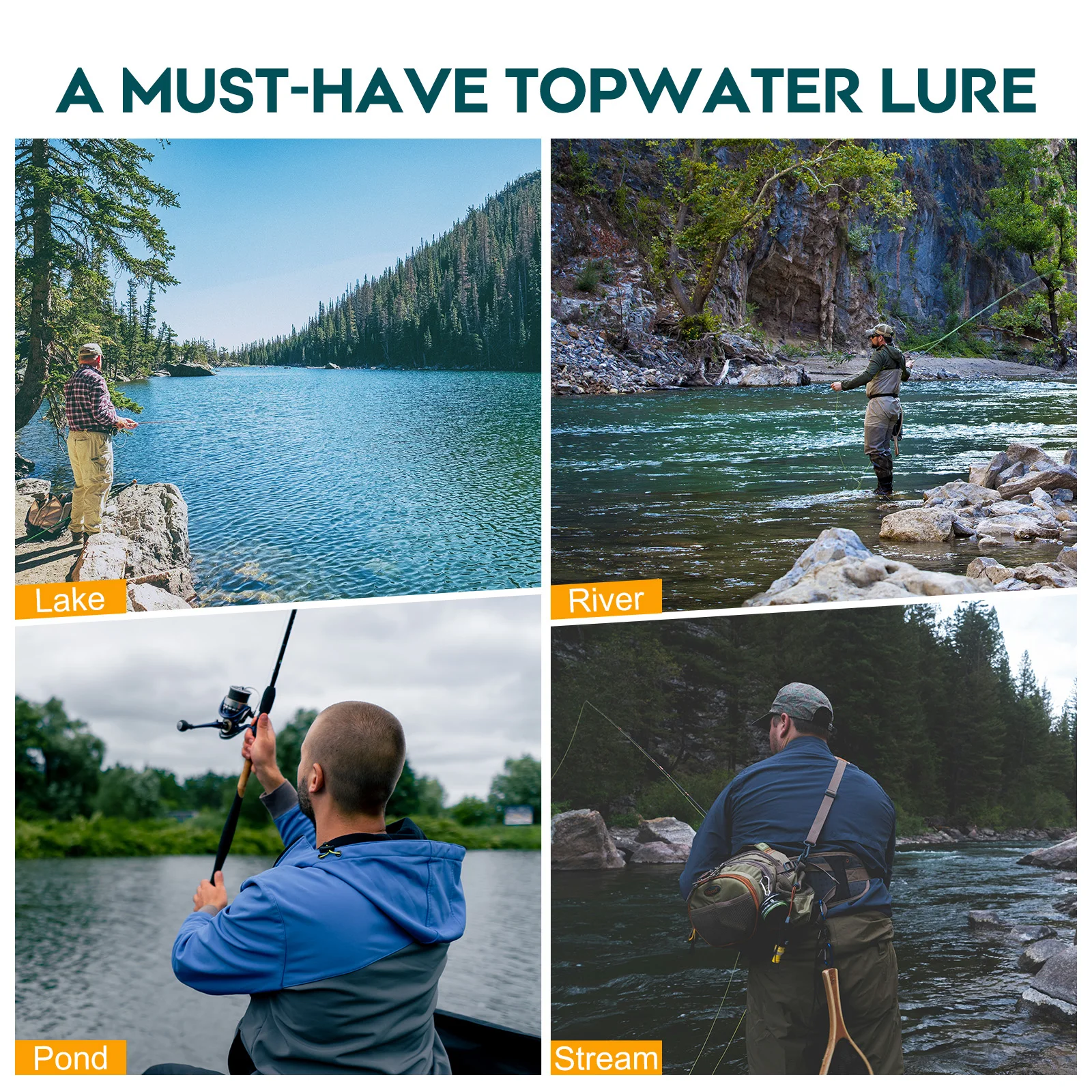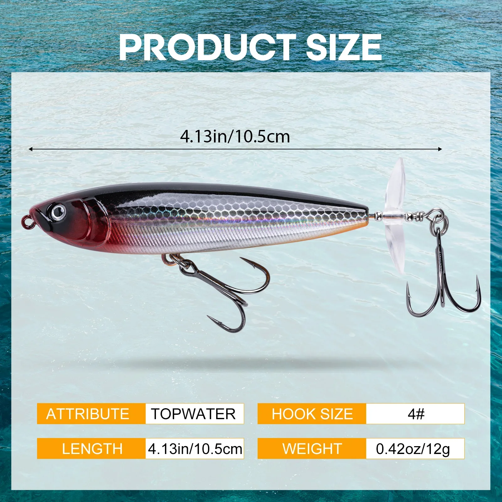 Goture 3/5/6pcs10cmTopwater Fishing Lure Popper Artificial Bait Hard Popper Soft Rotating Tail Fishing Tackle Fishing Bait is a versatile and robust fishing lure designed to cater to a range of fishing scenarios. Whether you're casting your line into a serene stream, the vast expanse of an ocean beach, or the tranquil waters of a reservoir pond, this lure adapts to your fishing environment with ease. Its unique design, inspired by the original Popper, ensures that it operates effectively in various fishing positions, from the slow crawl to a rapid pace that mimics a swamp buggy, emitting the characteristic whopper-plopping sound that fish cannot resist.