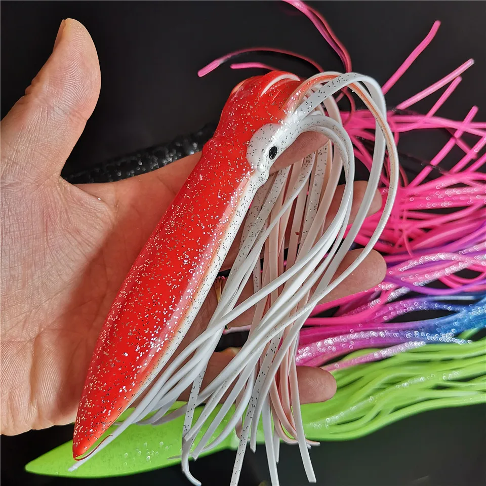 Señuelo de pulpo de 30cm y 40G, 1 piezas, señuelo suave de calamar, pesca en mar, falda de agua salada, aparejos de pesca
