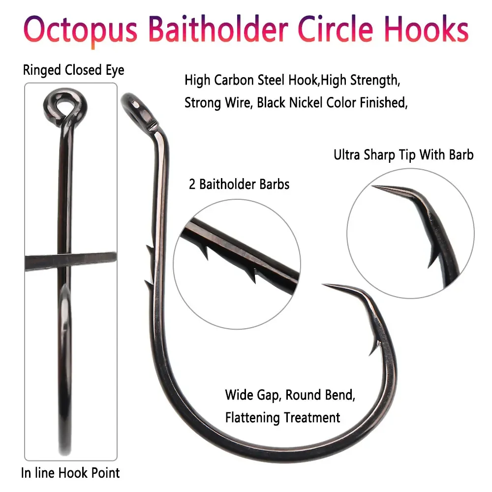 【Alto rendimiento】-Los anzuelos baitholder de pulpo tienen 2 púas, con punto de anzuelo en línea y ojo cerrado, los peces no son fáciles de escapar.