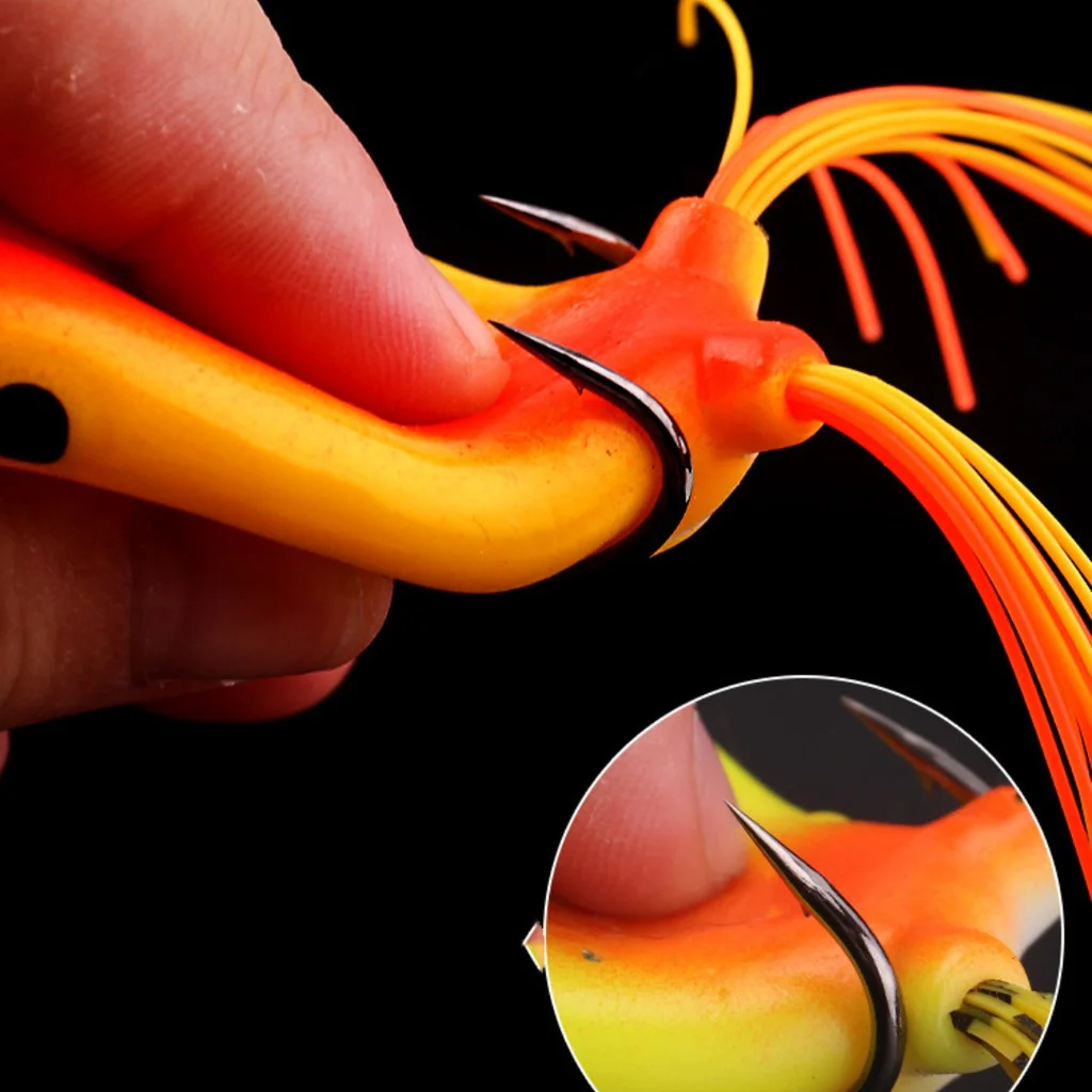 1. El cuerpo de la rana adopta tecnología de recubrimiento multicapa, material de goma, que es más suave, y el diseño de ojo de rana 3D es llamativo y realista, lo que es muy atractivo para el pez objetivo.