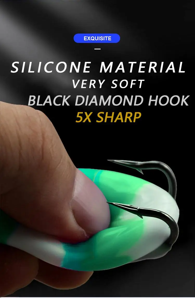 3. Cuerpos suaves y duraderos/presentaciones sin malas hierbas: Las ranas están hechas con un material de goma ultrasuave que se comprime fácilmente para exponer los ganchos rápidamente sin engancharse o perderse.