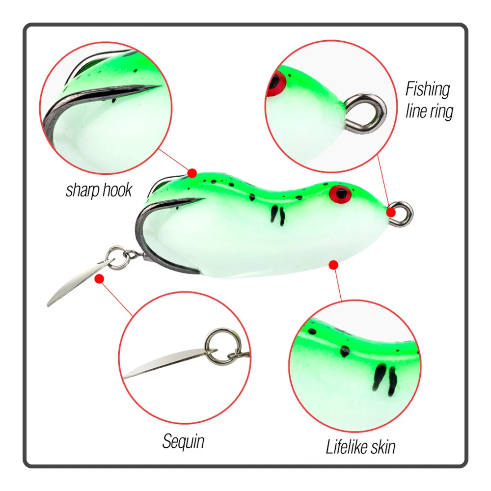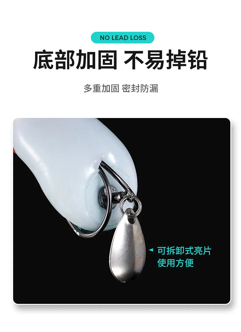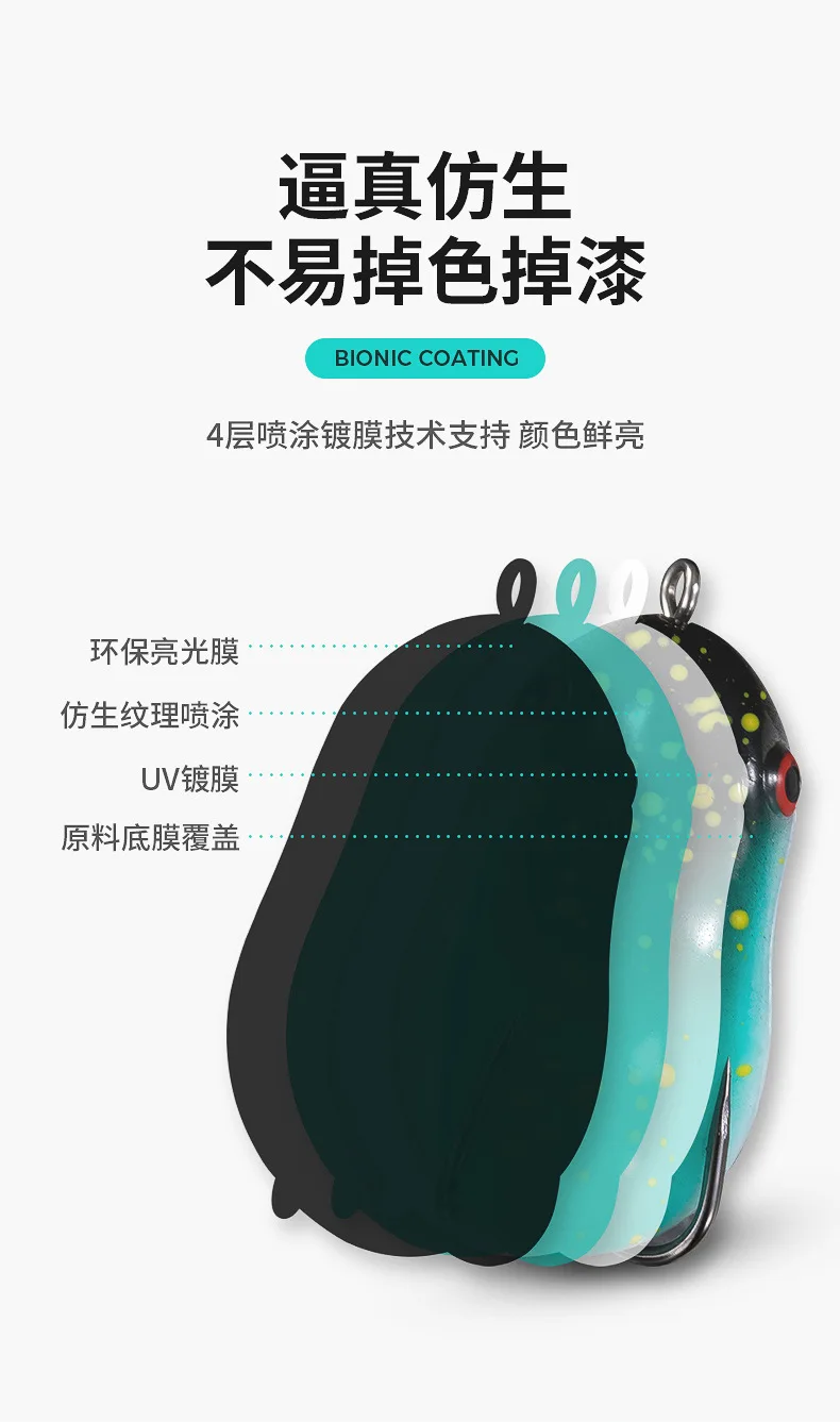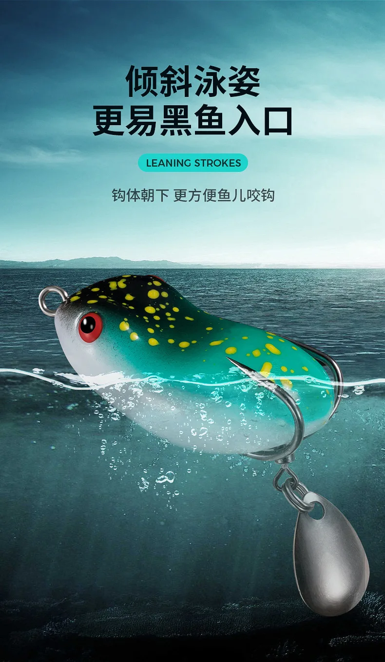 1. Aspecto biónico, imitación de agua flotante, material de silicona, punta de gancho levantada y afilada.