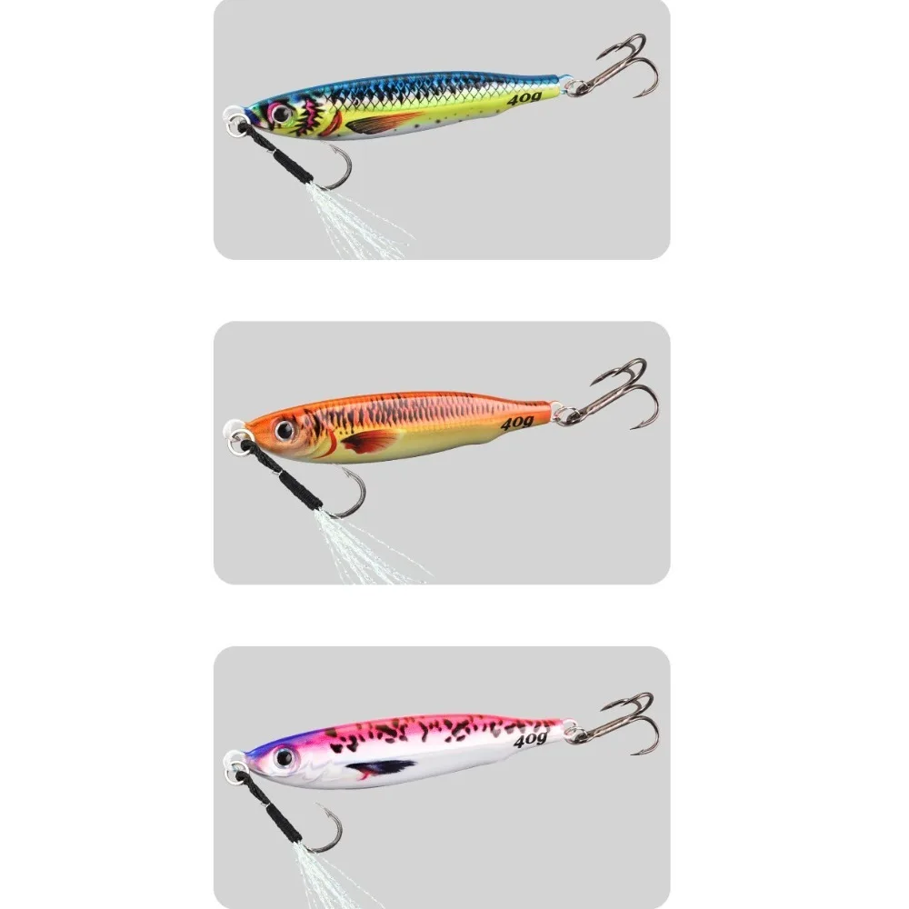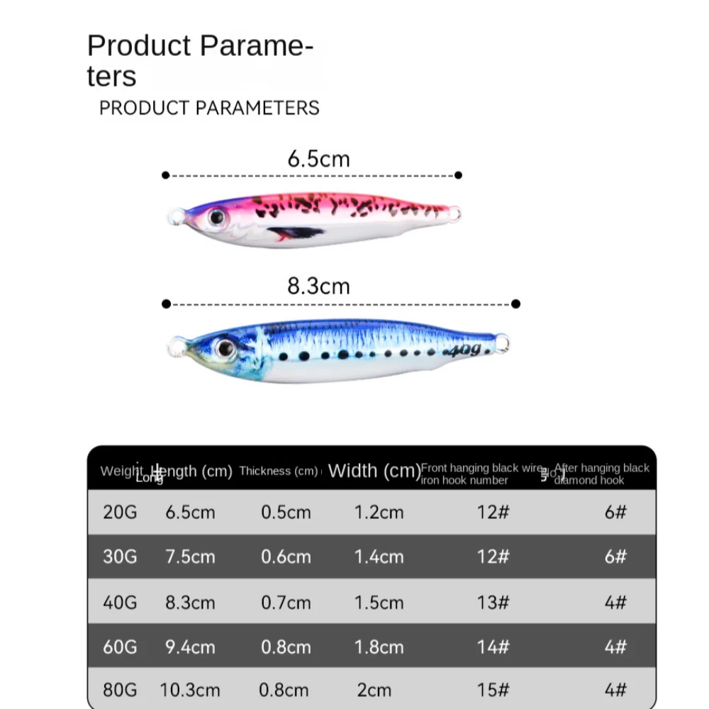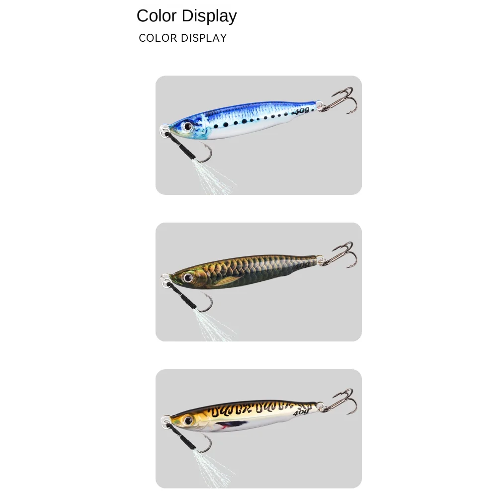 Nuevo y de alta calidad Peso: 40g 80g Longitud: 8,3 cm/Tamaño 10,3 cm: como se muestra Material: metal Tipo: rápido/velocidad Jigs/Color: como se muestra Cantidad: 1 pieza. Características: los ojos 3D lo hacen una herramienta perfecta para los amantes de la pesca. El cuerpo colorido puede facilitar la captura de peces. Acción realista y rápida en el agua. Excelente efecto visual de atraer peces. Aviso: 1. El color real del artículo puede ser ligeramente diferente de las imágenes que se muestran en el sitio web debido a muchos factores como el brillo de su monitor y el brillo de la luz. 2. Permite una ligera desviación de medición manual para los datos. Gracias por su comprensión. 3. 1cm=0,39 ''. El paquete incluye: 1 señuelo de pesca