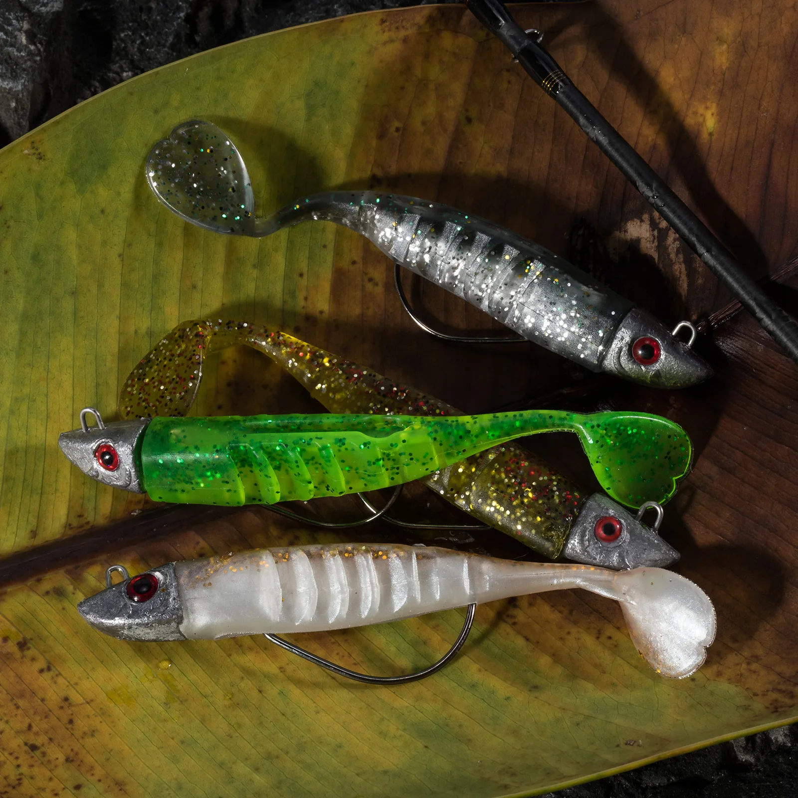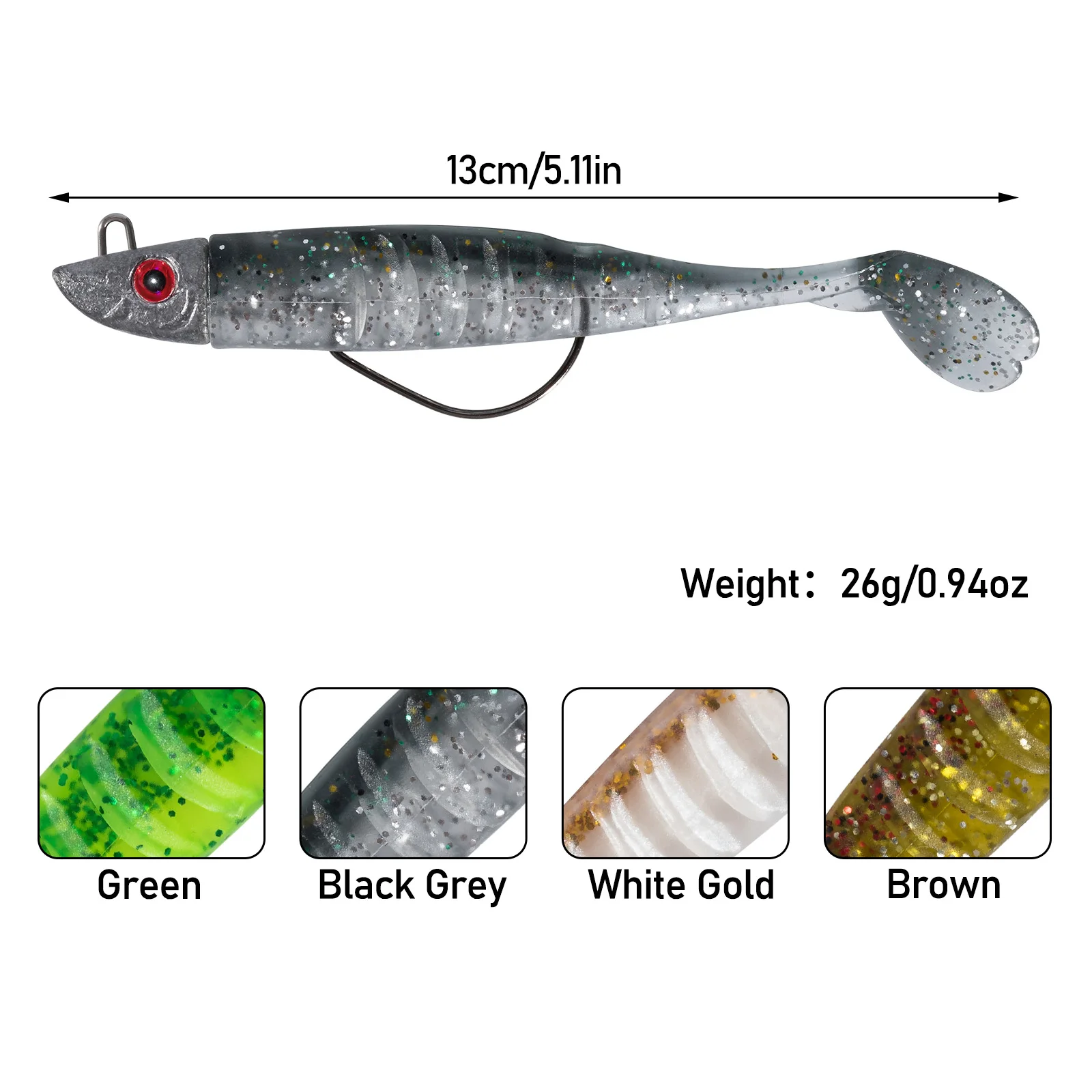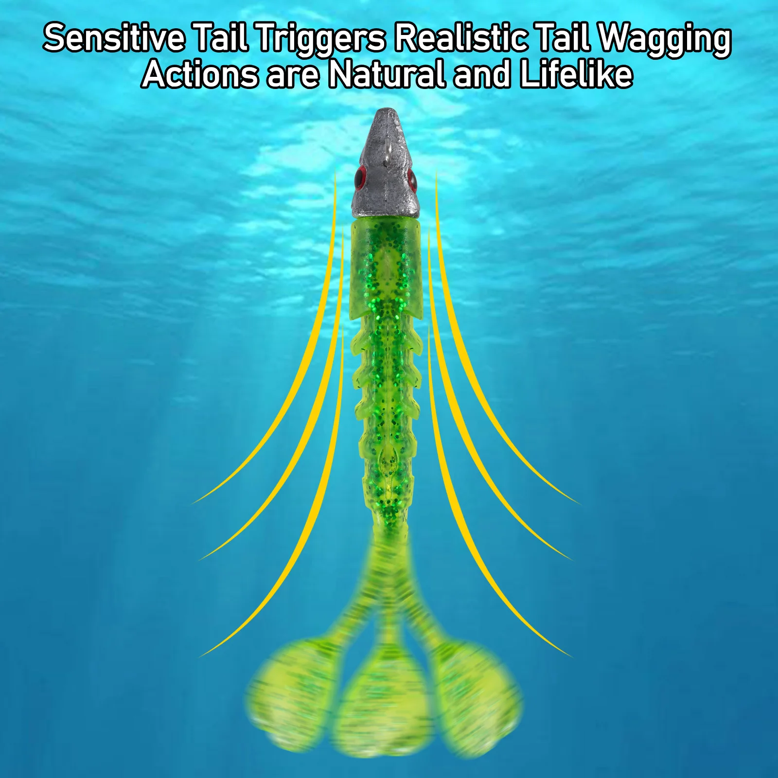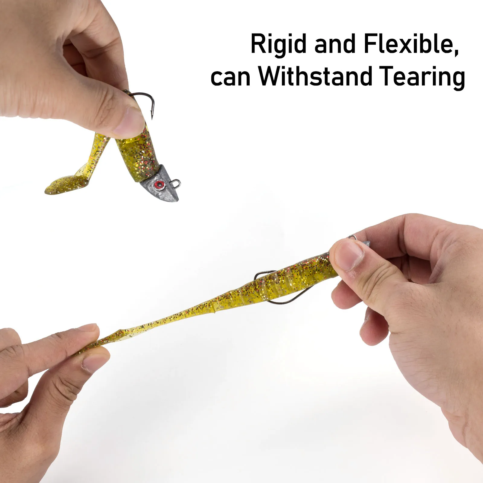 5. Fácil de montar y adaptable: el señuelo de plástico blando es fácil de conectar a aparejos y cebos y se adapta a cualquier situación subacuática. El diseño de doble ranura del anzuelo oculta del señuelo oculta la punta del anzuelo y mejora la apariencia del cebo, mejorando las posibilidades de lograr un enganche exitoso.