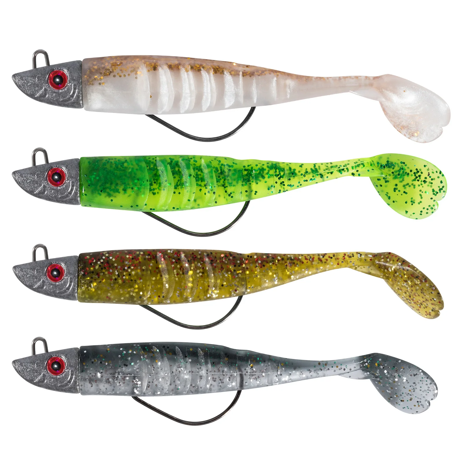 3.Construcción duradera: los señuelos de plástico blando están hechos de materiales de alta calidad que pueden soportar golpes agresivos de peces grandes.El cuerpo rígido y flexible puede resistir desgarros y conservar su forma bajo el agua, lo que los convierte en la elección perfecta para viajes de pesca duraderos.