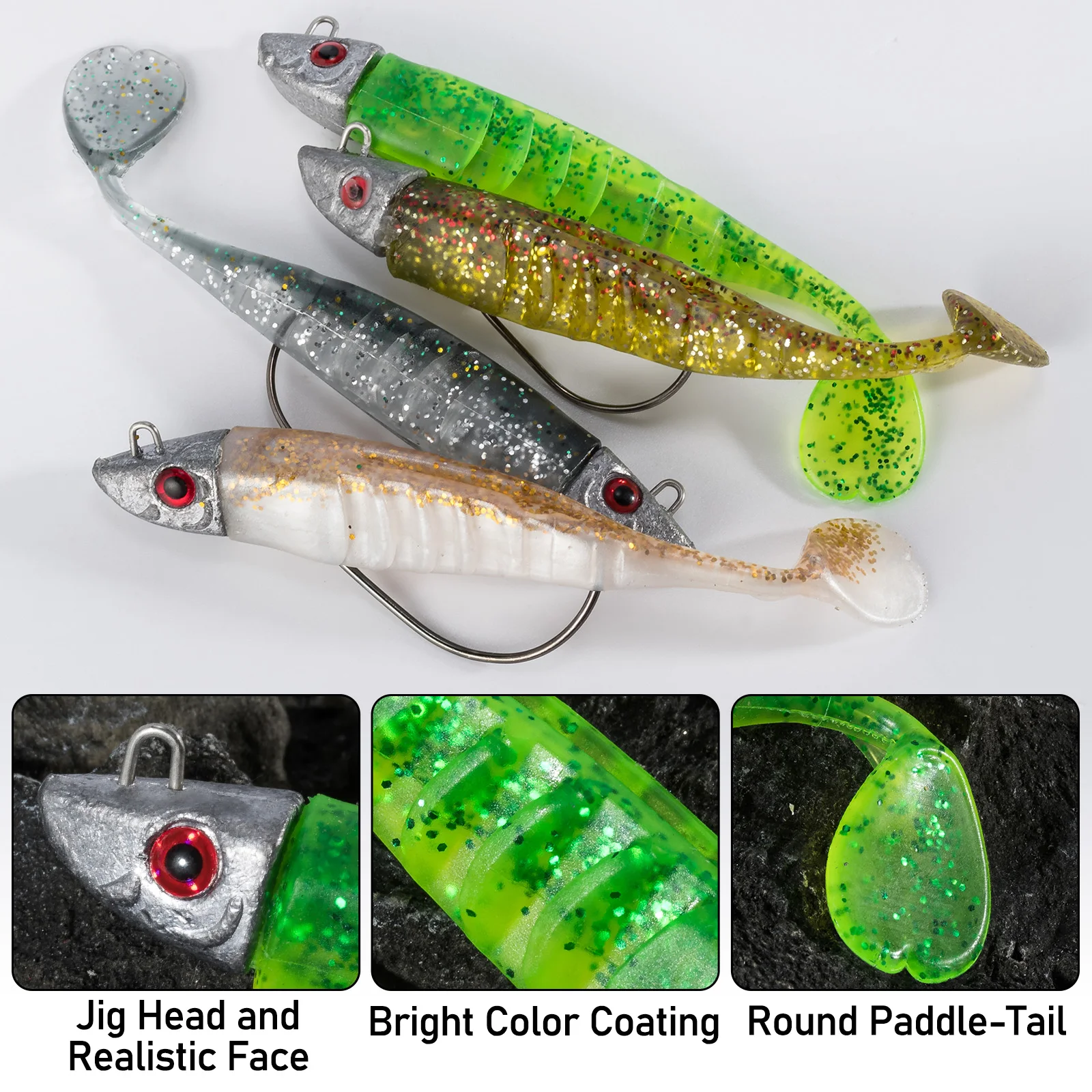 2.Acción de natación realista: el diseño de cola de remo redonda del señuelo de plástico suave imita el movimiento de natación natural de los peces cebo vivos.La acción realista de cola desencadena el instinto de caza del pez depredador, haciéndolo irresistible para ellos.