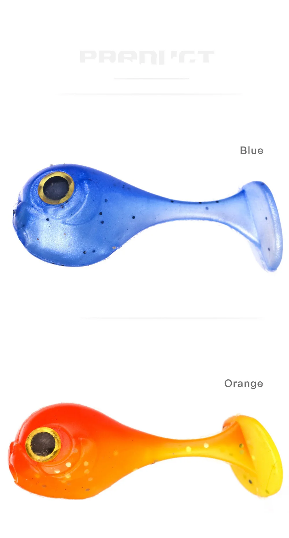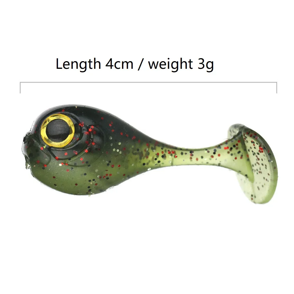 5 unids/lote de señuelo suave de cabeza grande 3 ojos d 4 cm / 3g cebos artificiales de ballena pequeña de silicona aparejos de pesca de gusano de dos colores realistas