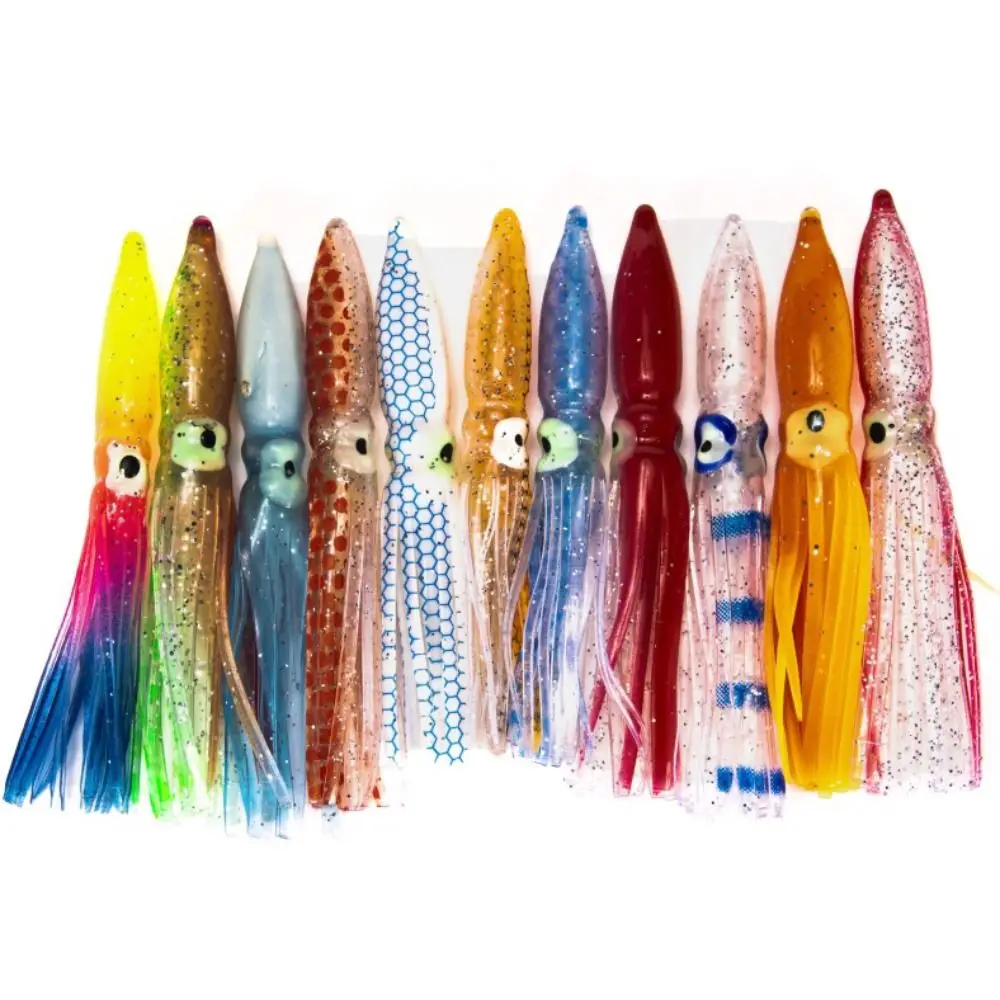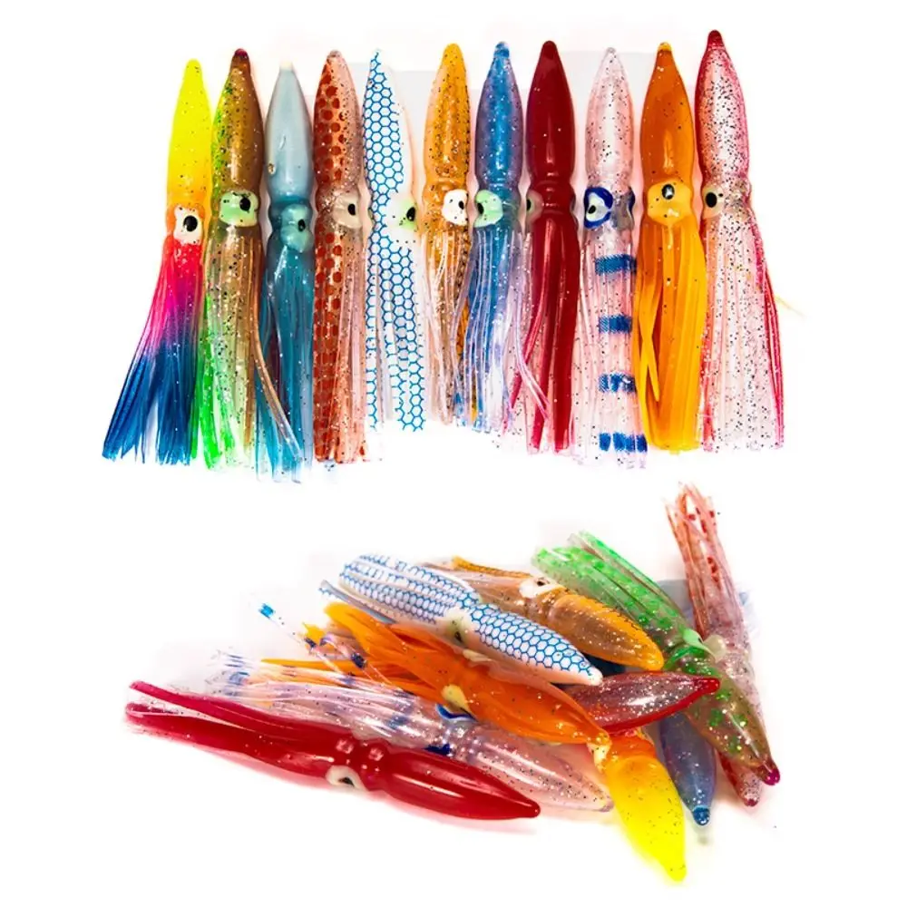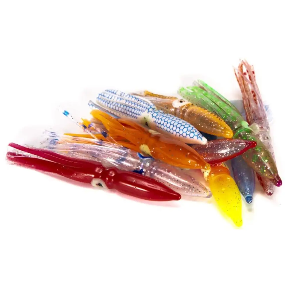 Color: cantidad de color aleatorio: 10 tamaño de la piezas: largo 8cm (3,15 pulgadas), ancho 1cm (0,39 pulgadas) material: PVC el paquete incluye: 10 cm y 8cm (3,15 pulgadas). señuelo suave calamar nota: 1. Permita diferencias de 0,1-0,3 cm (0,04-0,12 pulgadas) debido a la medición manual, gracias. 2. Por favor, comprenda que debido a la irradiación de la luz o la diferencia en la pantalla del ordenador, no puedo garantizar que las fotos y el color real 100% sean iguales.