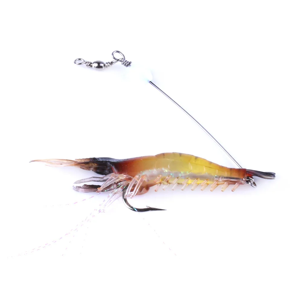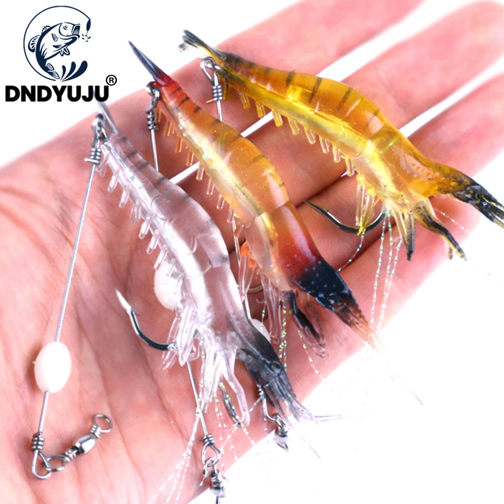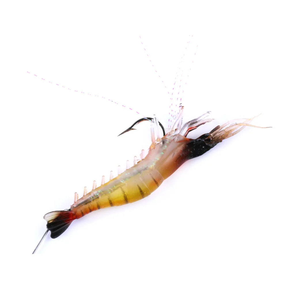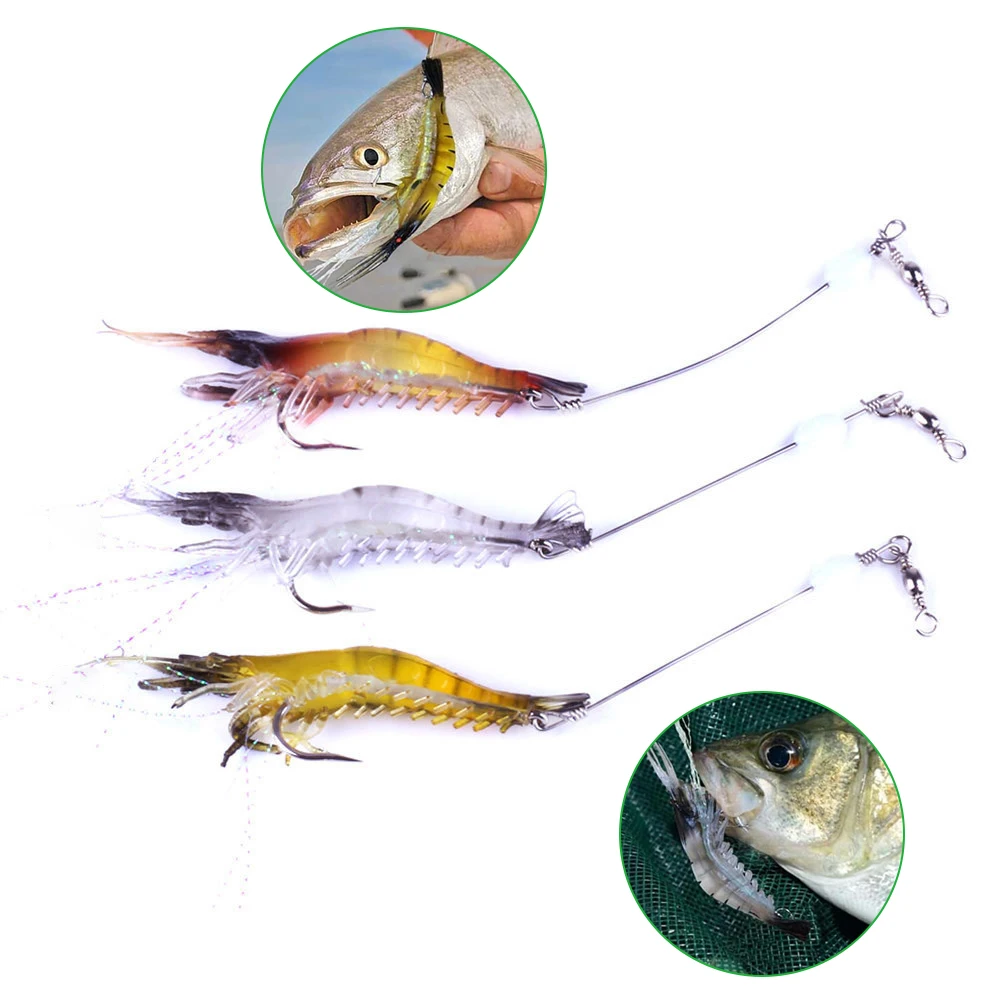Señuelo suave de camarón luminoso, cebo Artificial de silicona con anzuelos, giratorios, juego de aparejos de pesca, 80mm/6g, 3 uds.