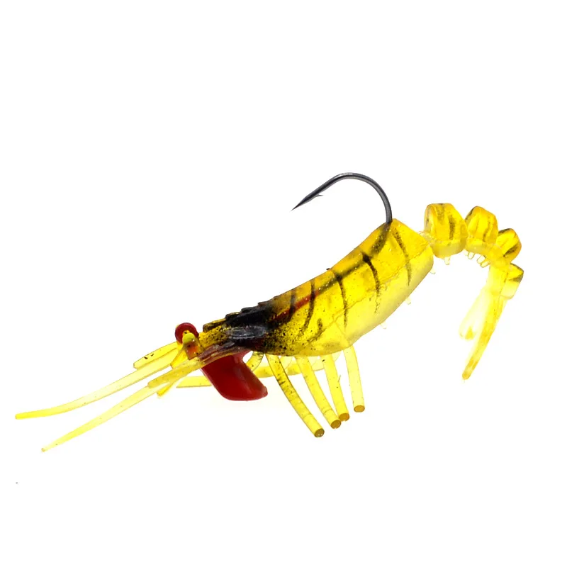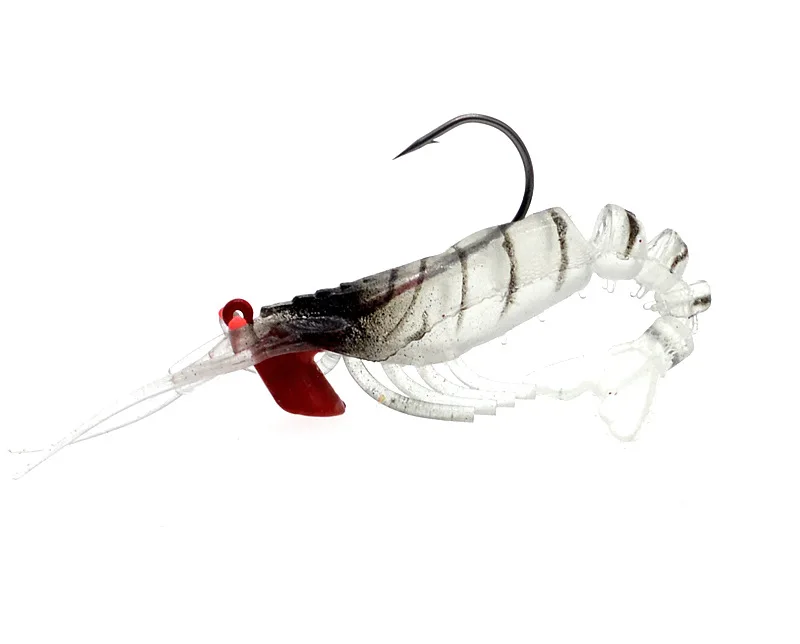 Señuelo suave para camarones de varias secciones, segmento de pesca, camarones con anzuelo de cabeza de plantilla, señuelos artificiales brillantes para peces, 1 pieza en oferta