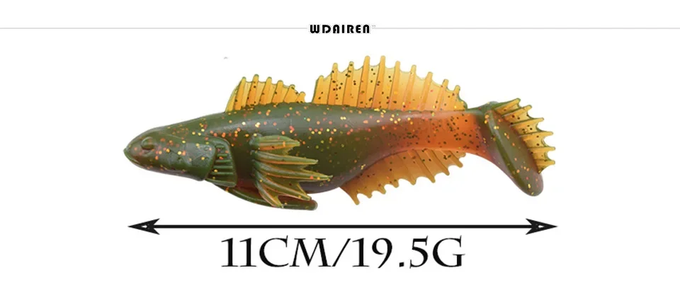 1 Uds. Señuelo suave con cola en T, 110mm, 19.5g, cola de paleta, Grubs suaves, señuelo de pesca de plástico Maggot, cebos blandos, plantilla Texas, pesca de lubina Marca: WDAIREN Longitud: 110 mm/4,33 pulgadas Peso: 19,5 g/0,70 oz Cantidad: 1 unidad/paquete Colores:4 colores Característica: cebo de silicona suave is_customized: Sí Material: plástico/caucho Peces objetivo: carpa herbívora, bagre ambulante, lubina Paquete: bolsas de cebo blando WDAIREN