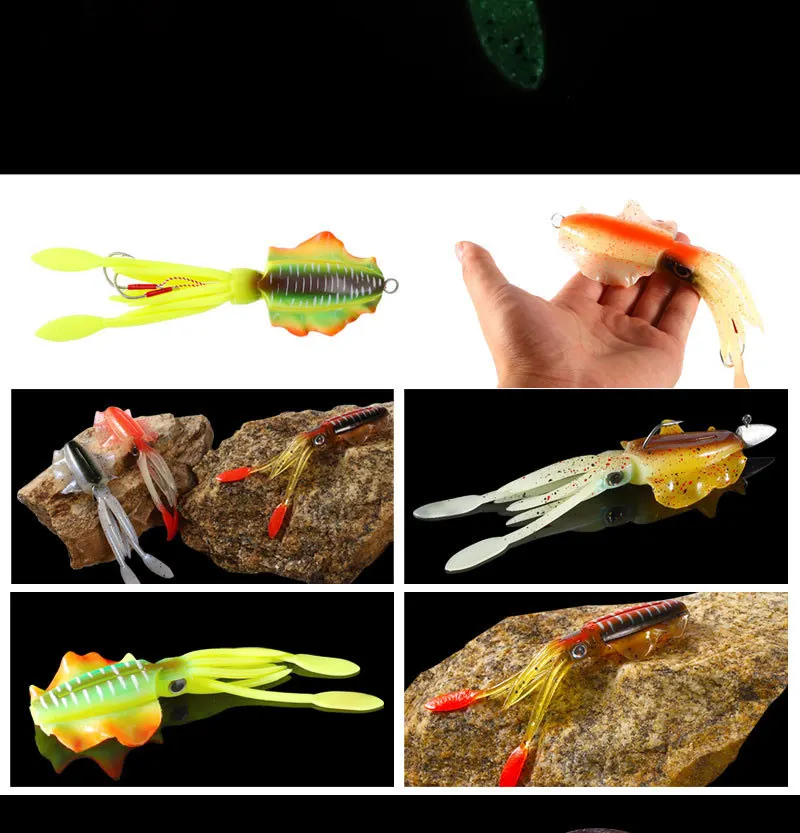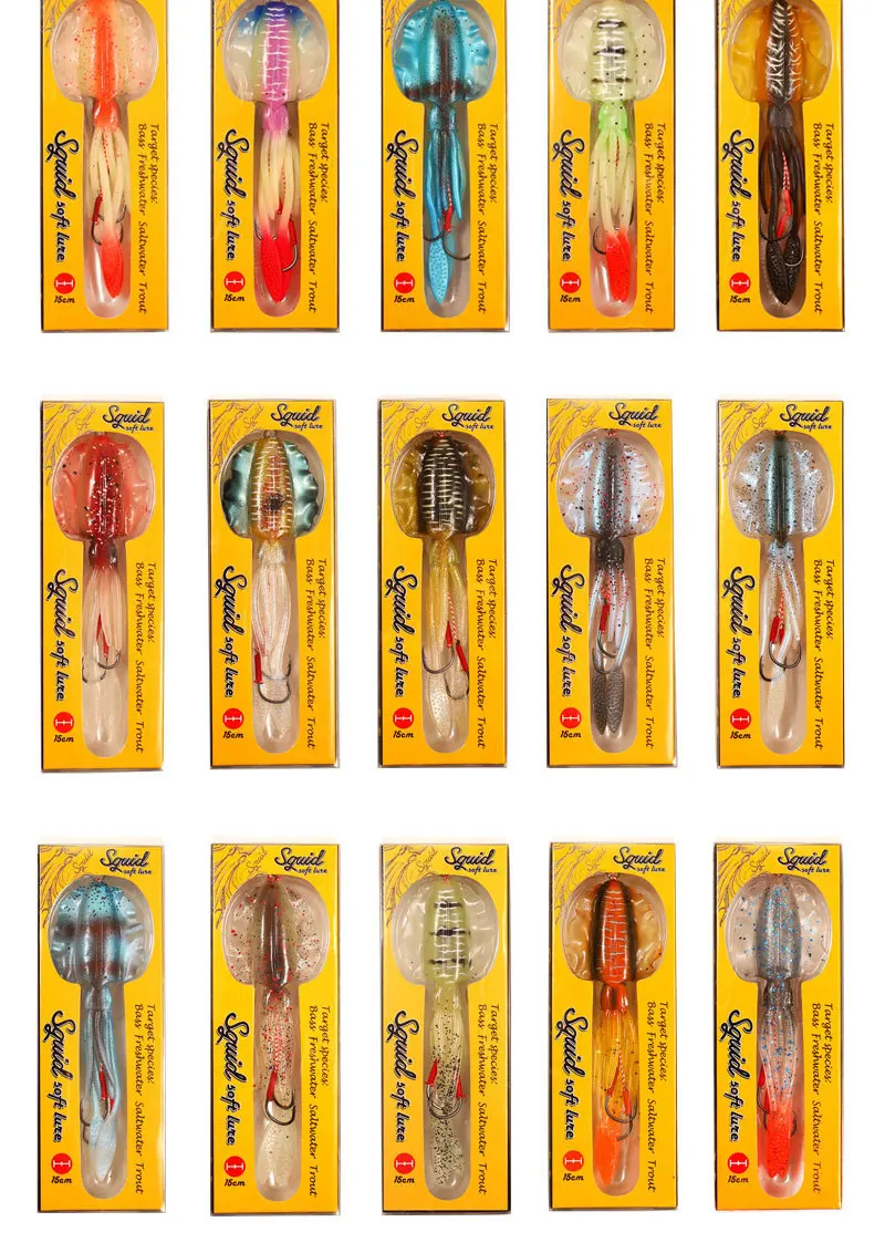 Como señuelo suave faldas de calamar cebo 15cm60g señuelo de pesca pulpo barco pesca en el mar PVC goma Artificial cebo suave Trolling Leurre