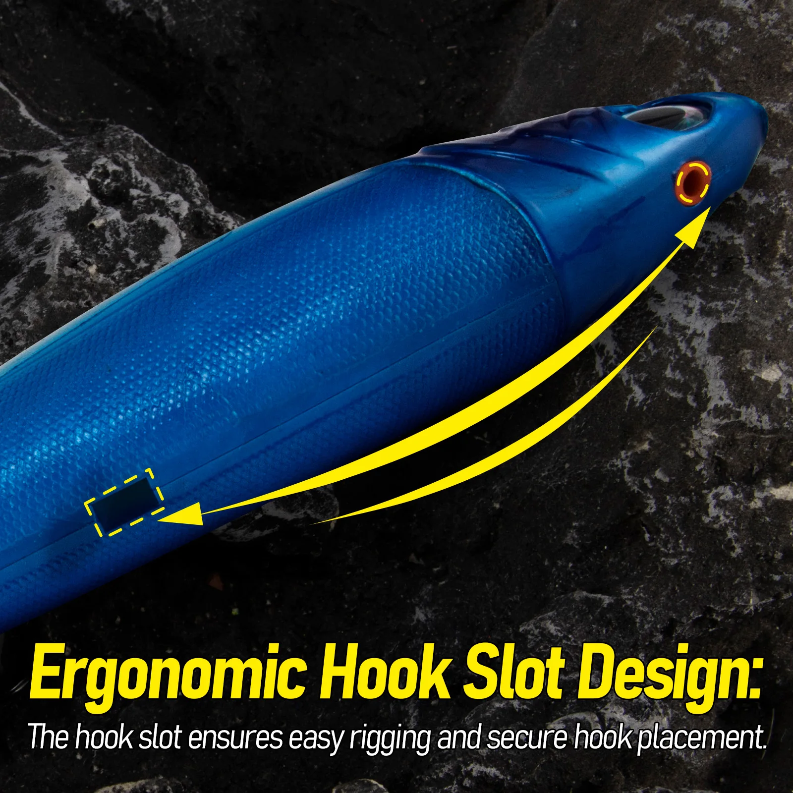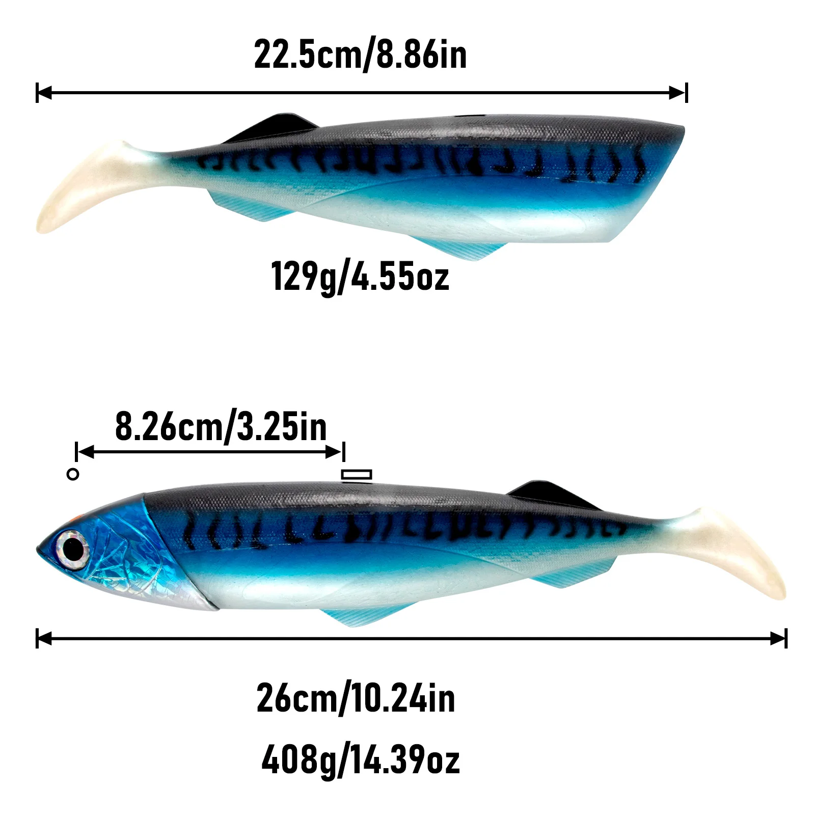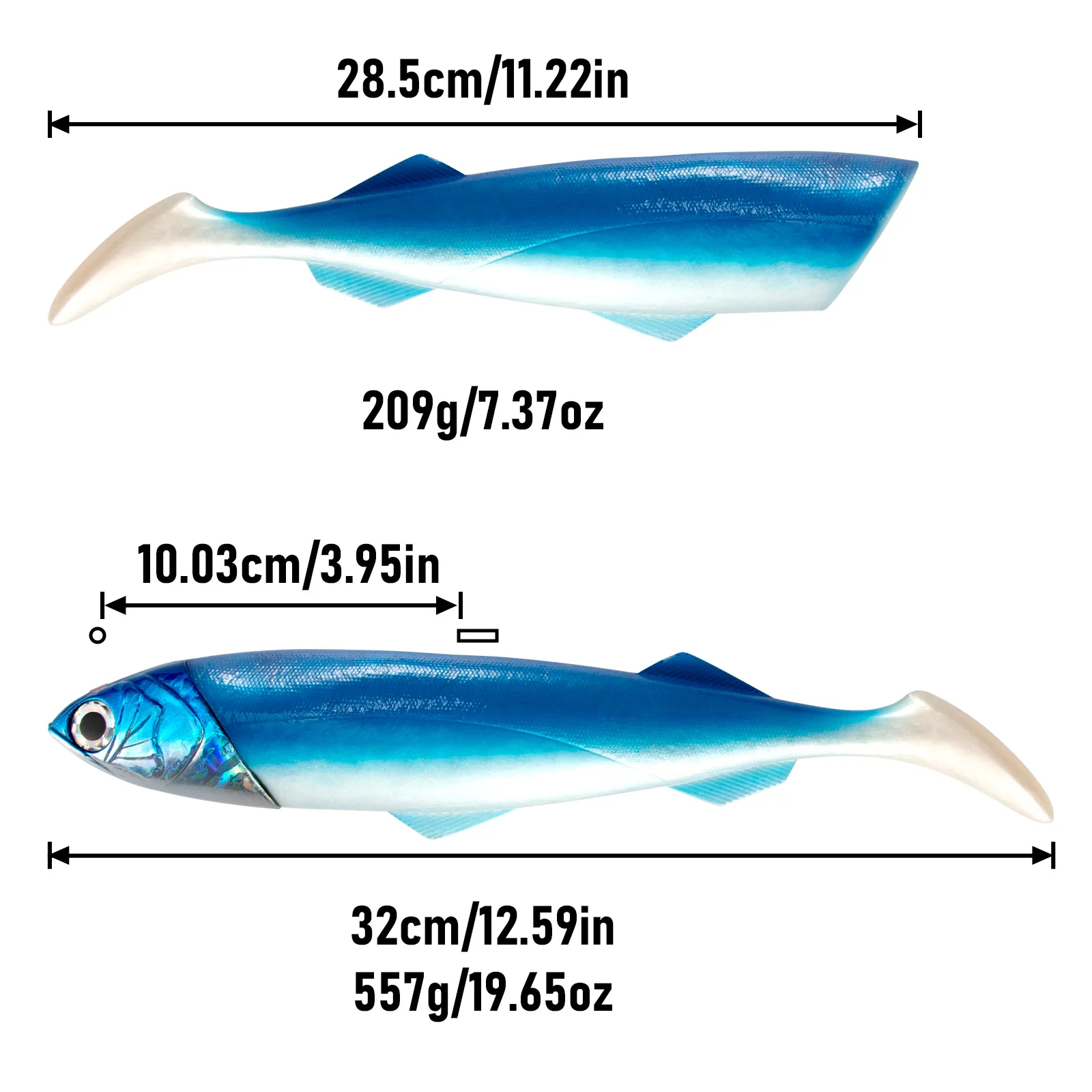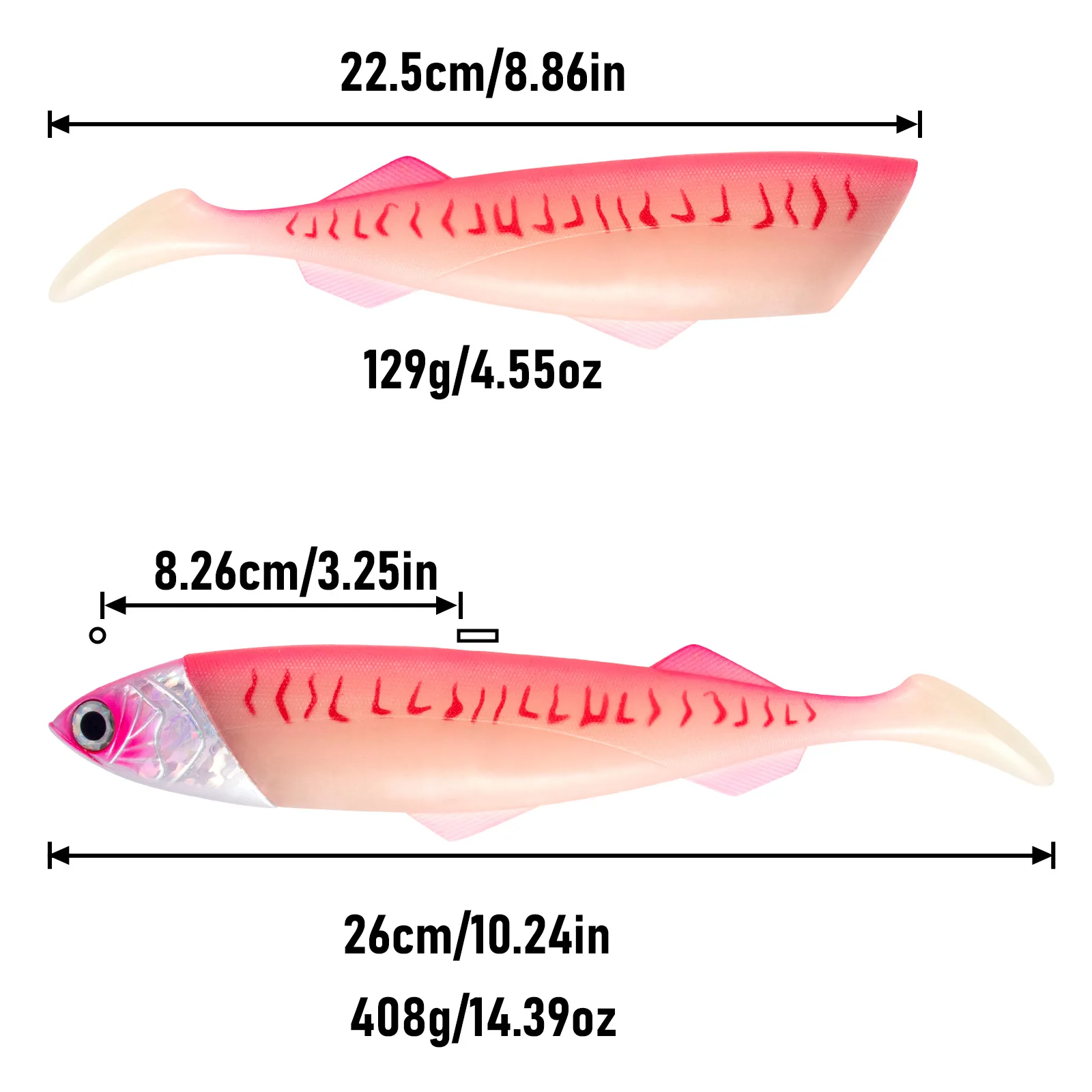 High-Quality Materials: Crafted with a soft PVC body for lifelike action, the lead jig head design ensures stability and weight for deep-sea fishing, while the paddle tail increases movement and attraction.