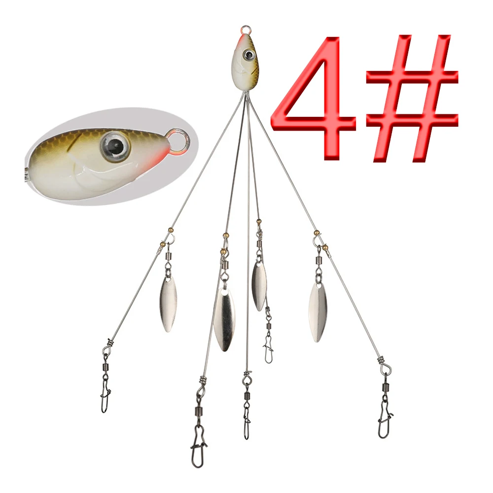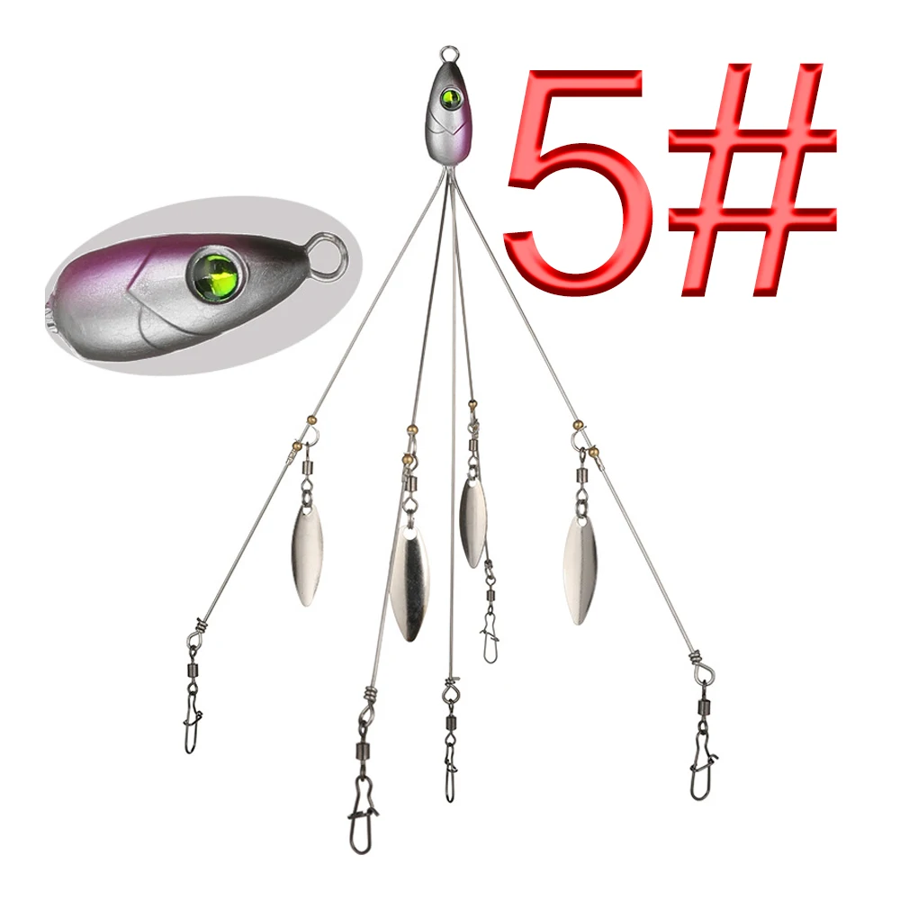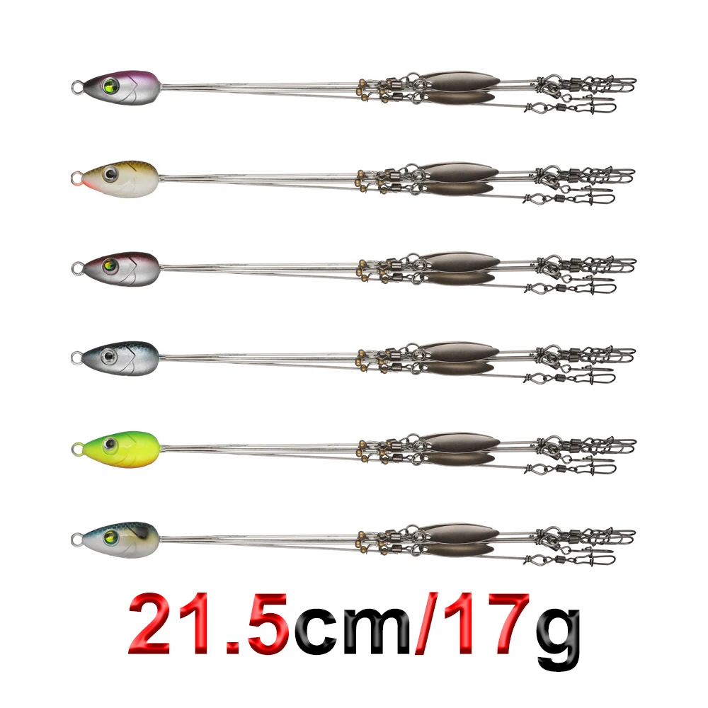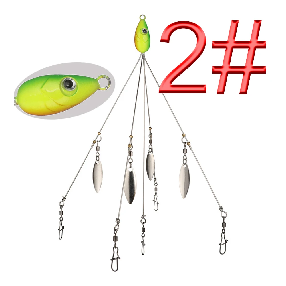 2.Gancho de manivela + cebo blando, anzuelo de plomo + cebo blando se pueden colgar en la parte inferior.Imita un grupo de peces pequeños en el agua y el efecto de atracción de peces es bueno.