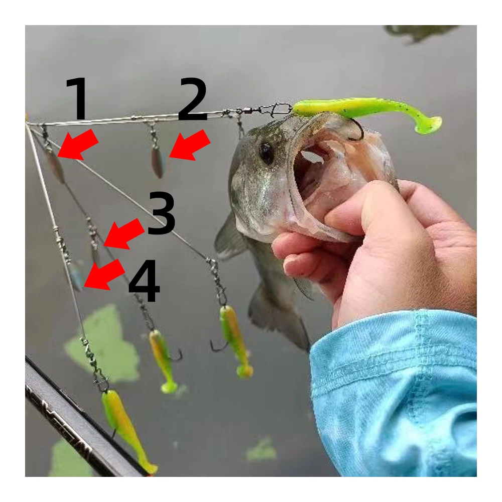 1.Al usarlo, use una herramienta para abrir el alambre de acero, cuelgue cebo blando en el fondo, imitando un grupo de peces pequeños nadando en el agua.